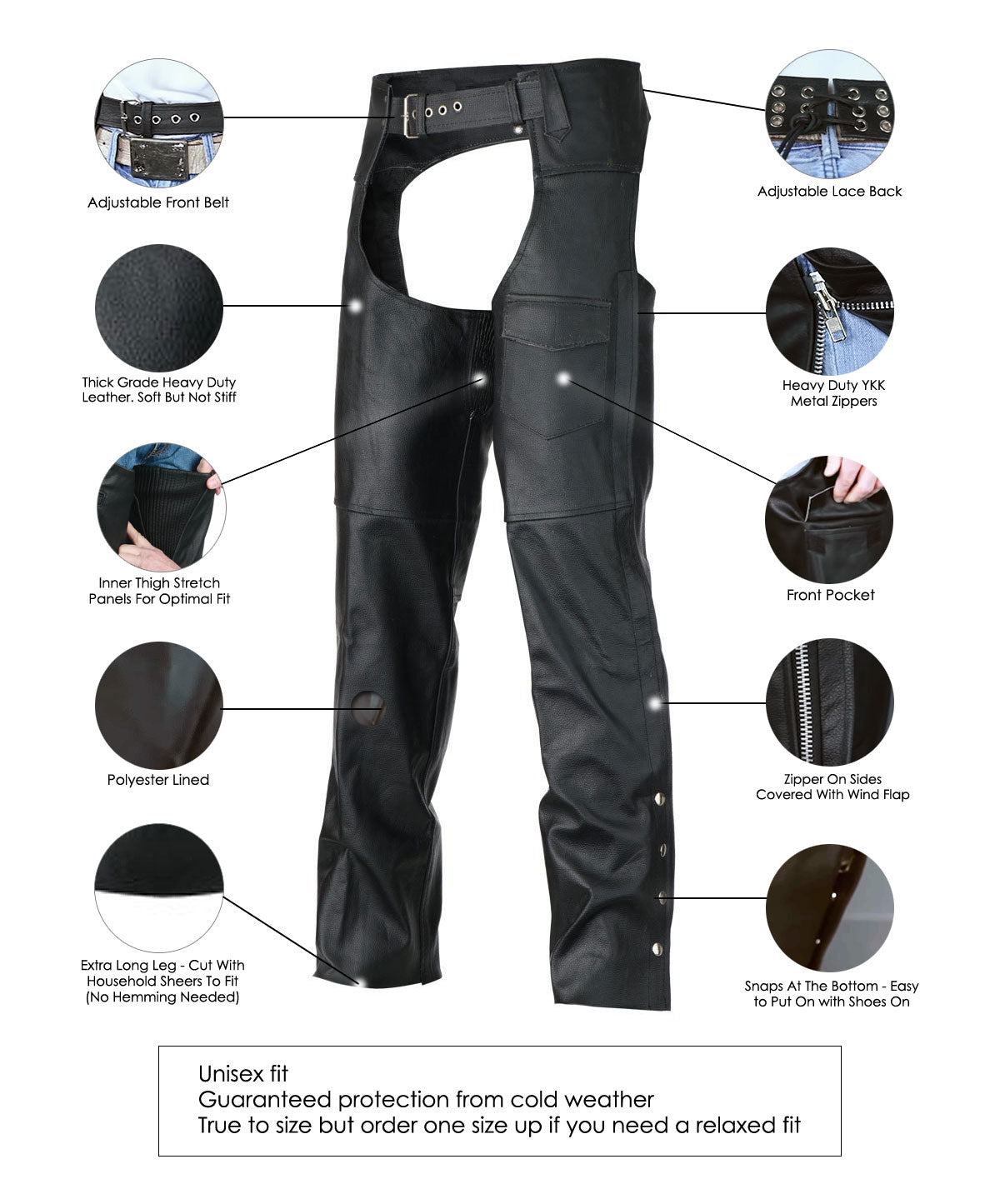 The Classic Plain Leather Motorcycle Chaps from Vance