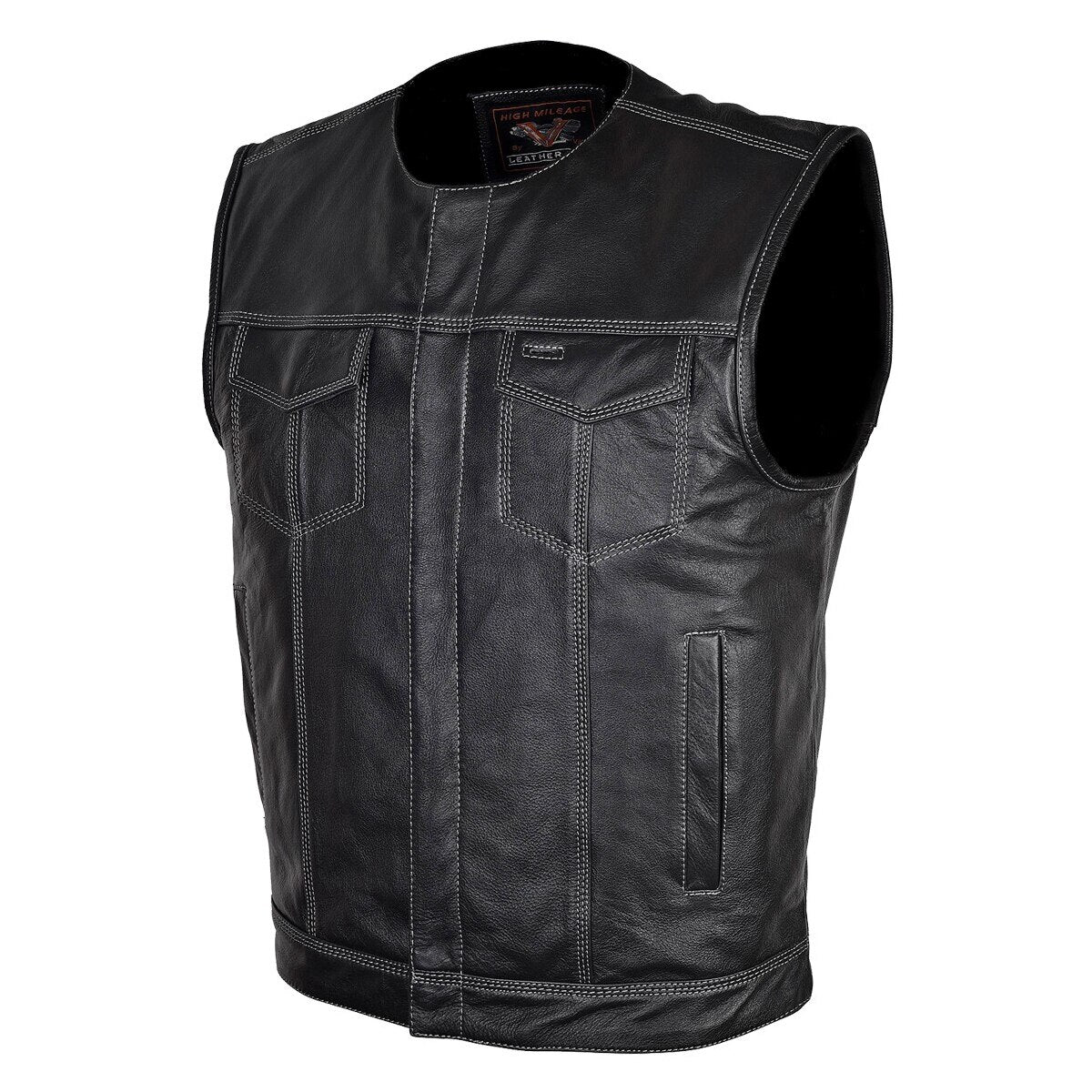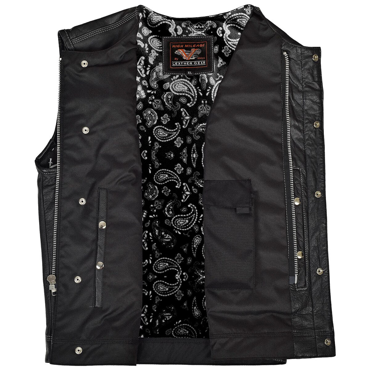 This lined black leather vest is made from soft, thick, and durable leather which is known for its durability, minimal flaws, and excellent wear. Sturdy construction, with reinforced interfacing throughout and a one-panel back for any patches or embroidery.