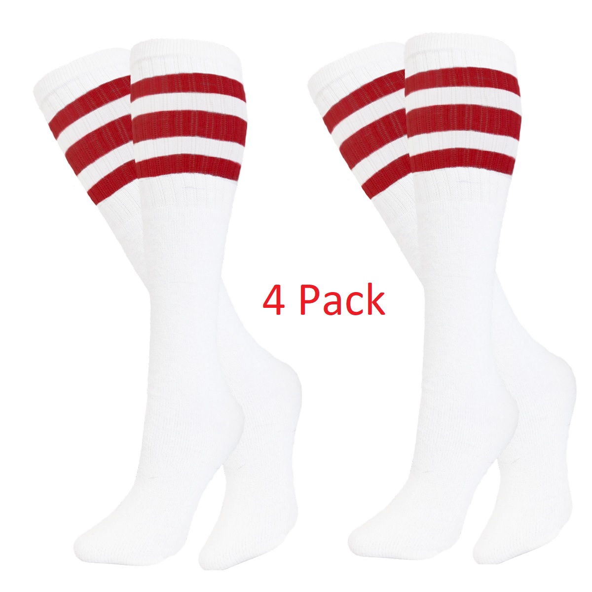 Baseball / Softball Striped Tube Socks - White and RedUnisex tube socks 23" Long 80% Cotton, 20% Polyester Set of 4 Pairs Color: White socks with Red stripes |