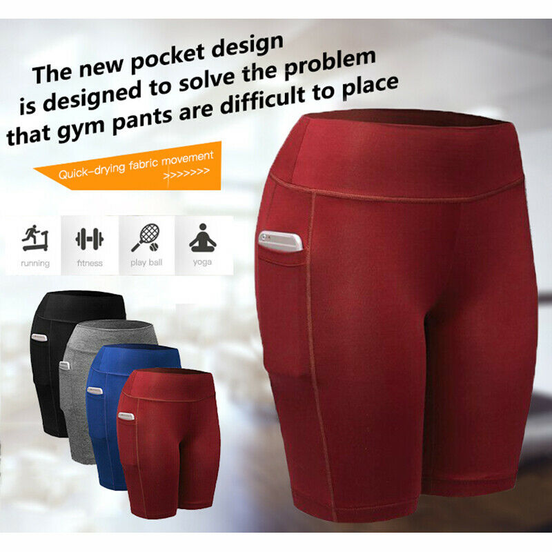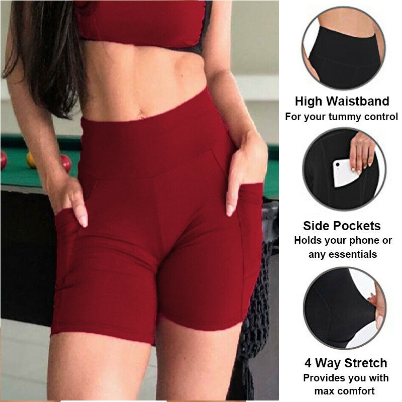 High Rise Yoga Shorts with Pockets Yoga Workout Athletic Shorts Cycling Biker Shorts Bermuda Shorts