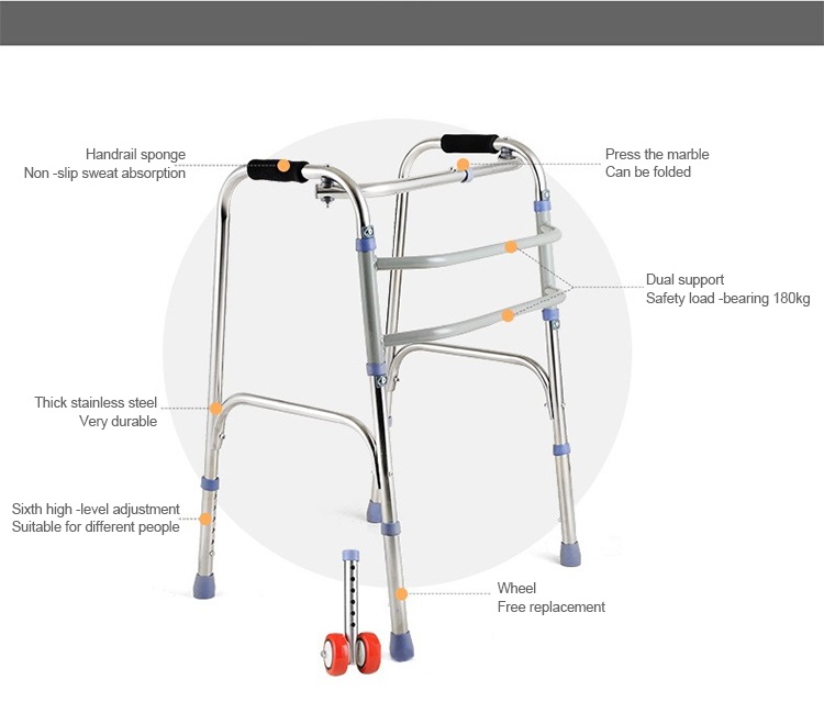 • Quality material: The walking frame is made of stainless steel, it is not easy to rust, firm and stable, durable, waterproof, light, easy to clean.