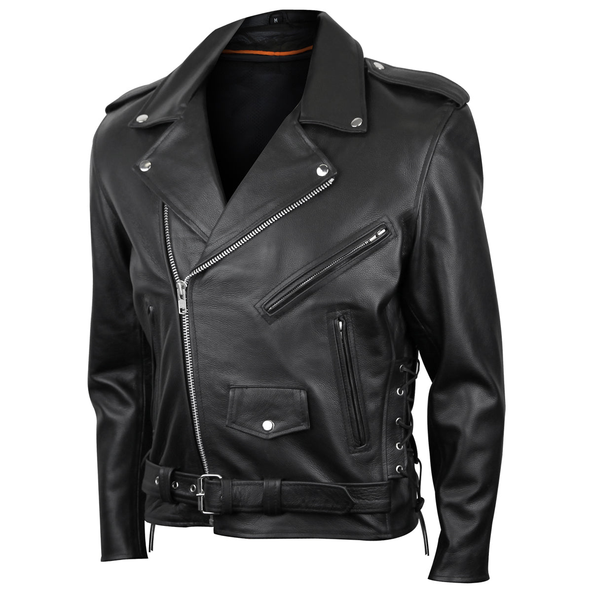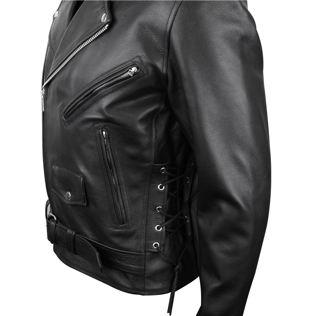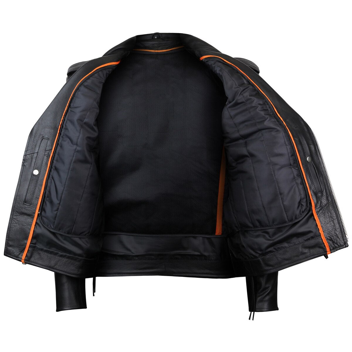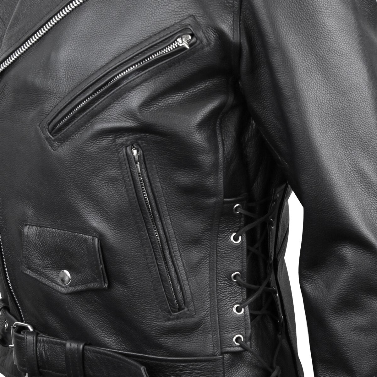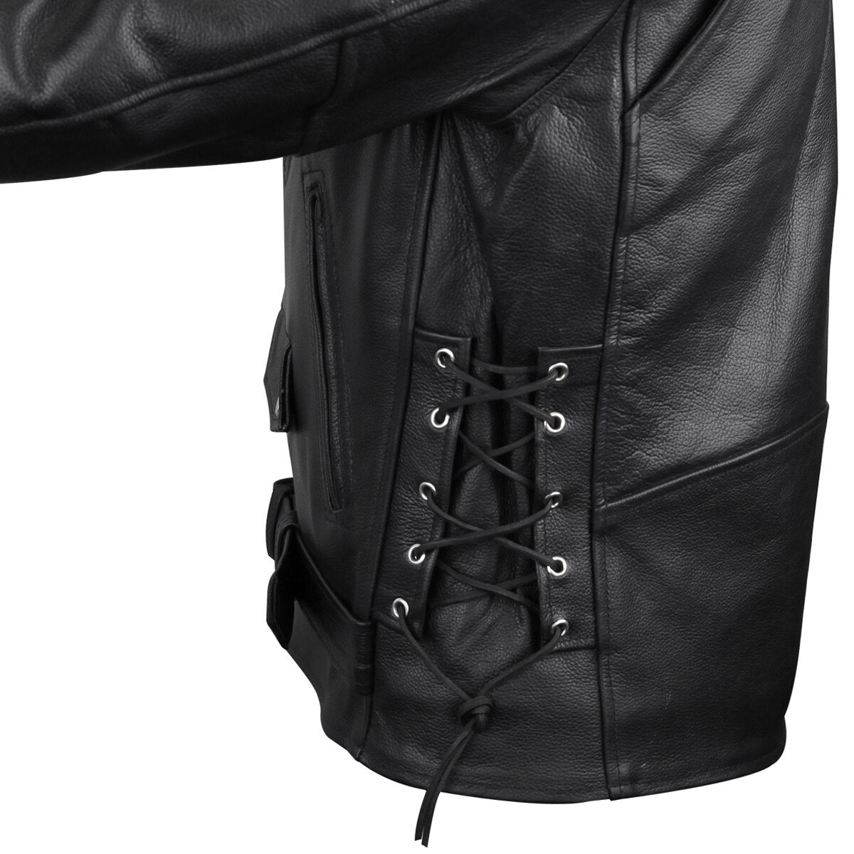 Vance VL515TG Men's Premium Cowhide Conceal Carry Insulated Liner and Side Laces Classic MC Motorcycle Biker Black Leather Jacket