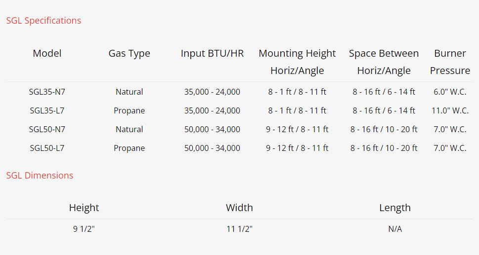• Available for Natural Gas and Propane