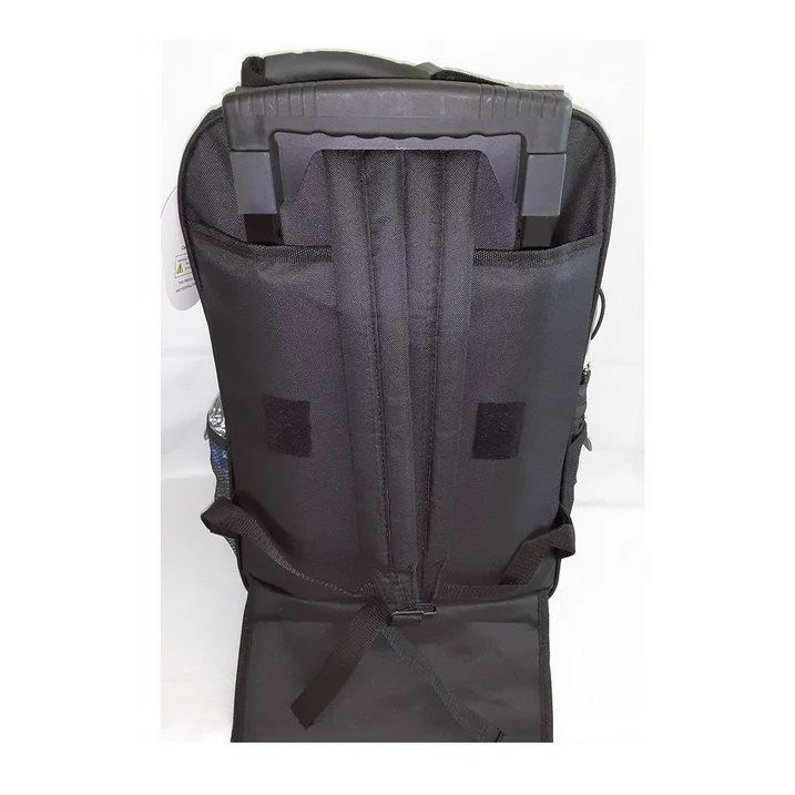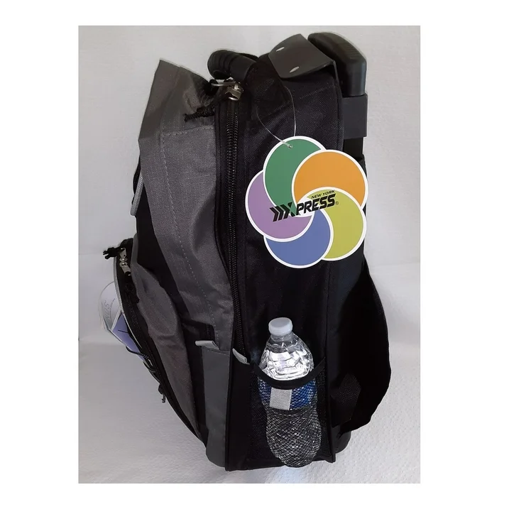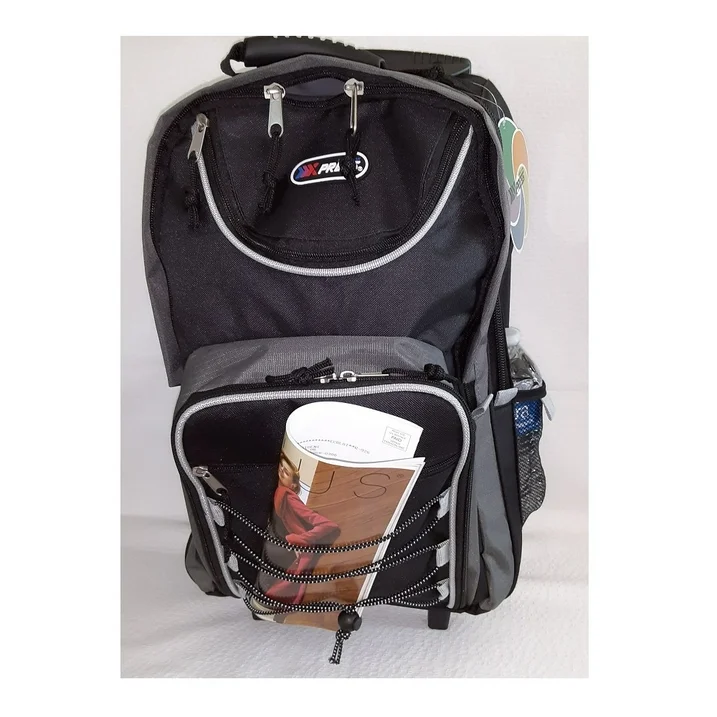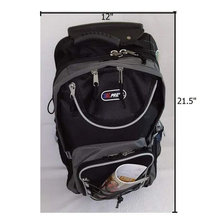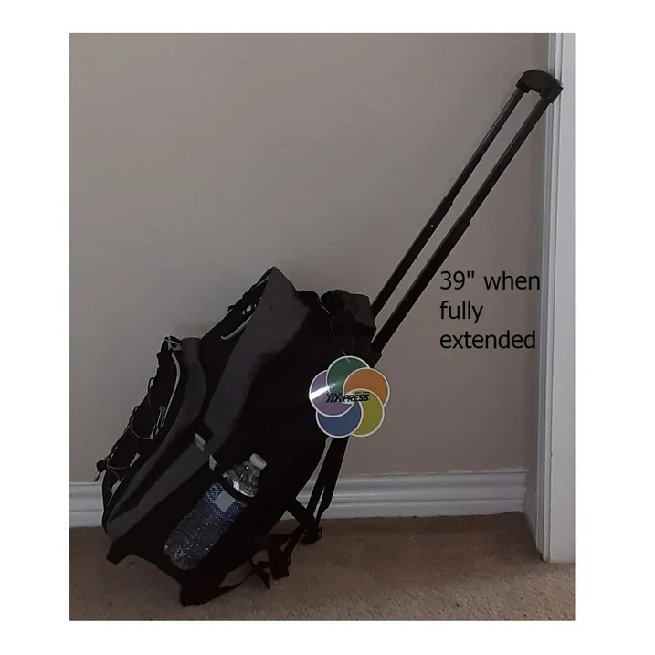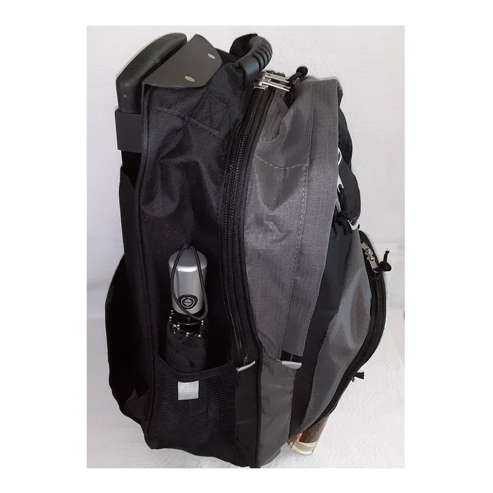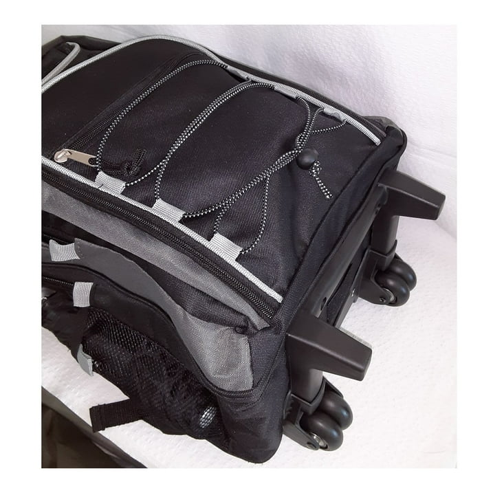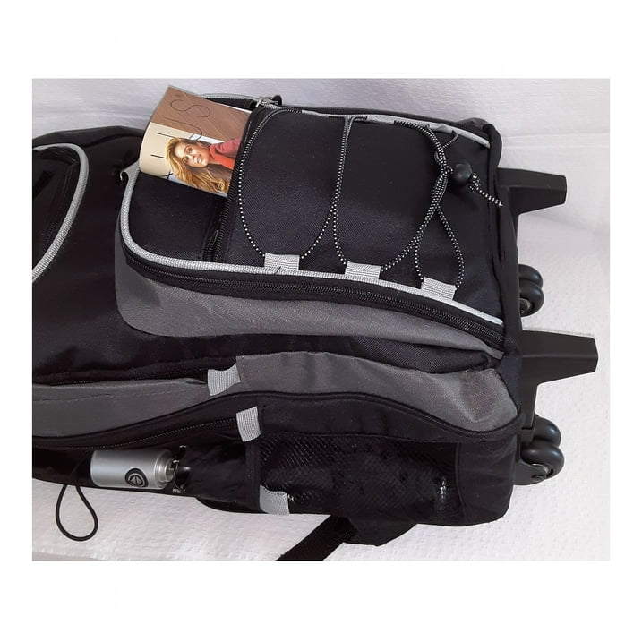 • This travel carry-on rolling backpack is roomy and practical with a telescopic pull out handle as well as the traditional backpack back straps.