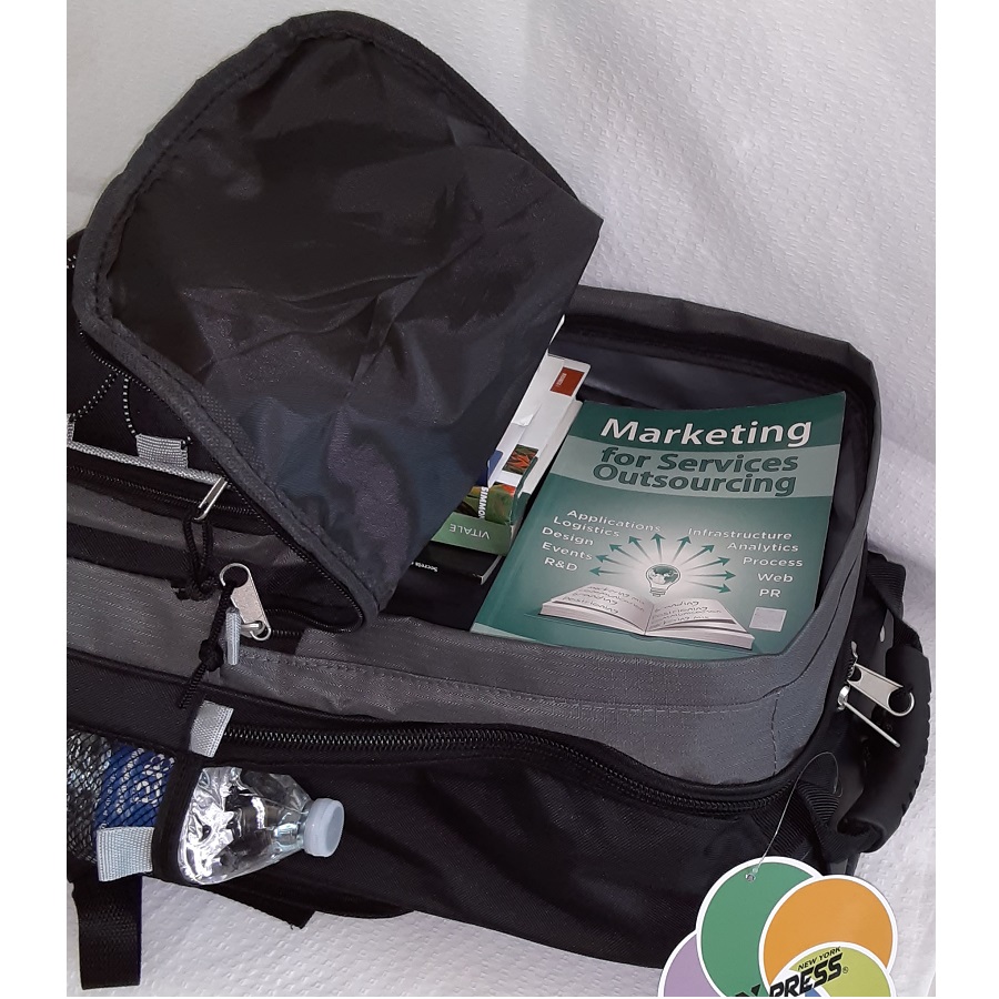 • Two main zippered compartments instead of the normal one. You can put your laptop or electronics in one and your clothes in the other.