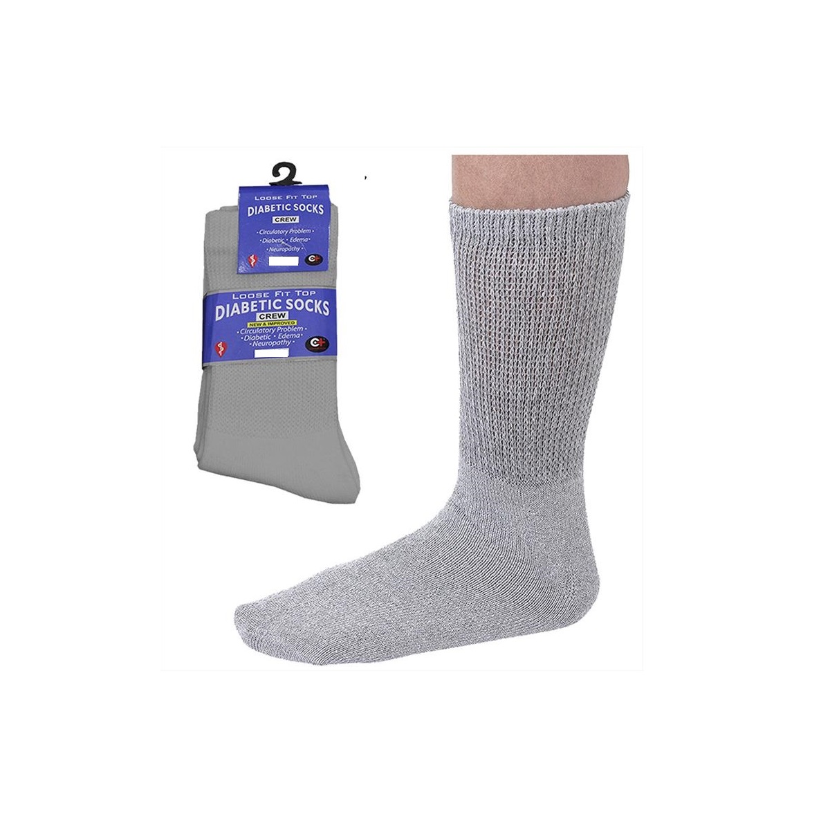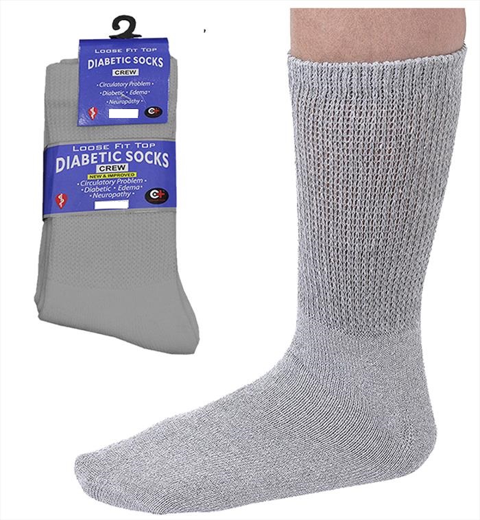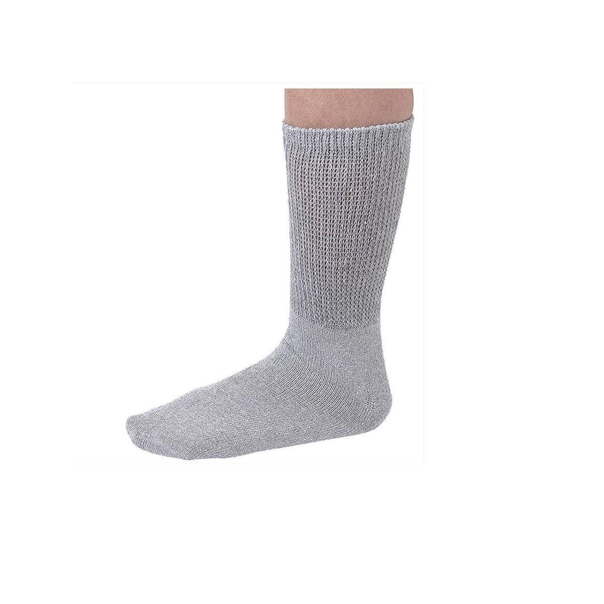 Gray Diabetic Crew Socks for WomenNon-Binding Extra Wide Top Soft Cushioned Sole Fits shoe size up to 11 80% cotton, 20% polyester 3 pair band roll Specially made for people with circulatory problems, diabetes, edema, and neuropathy. Long lasting after multiple washing. |