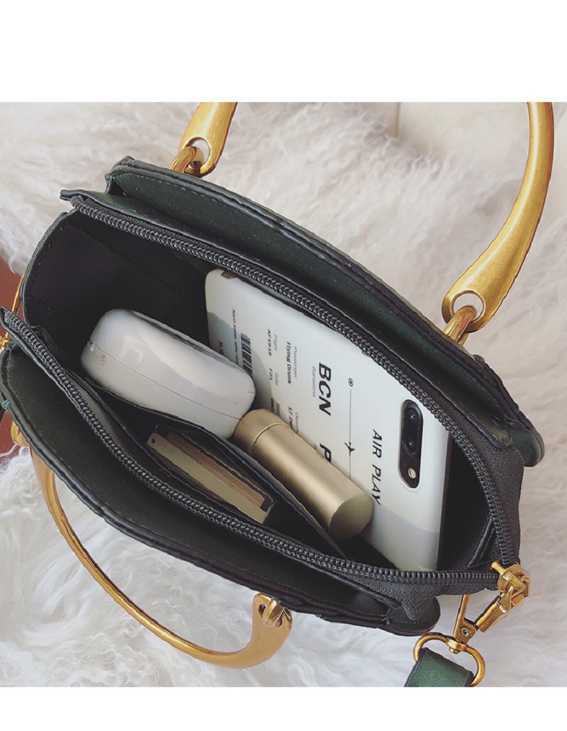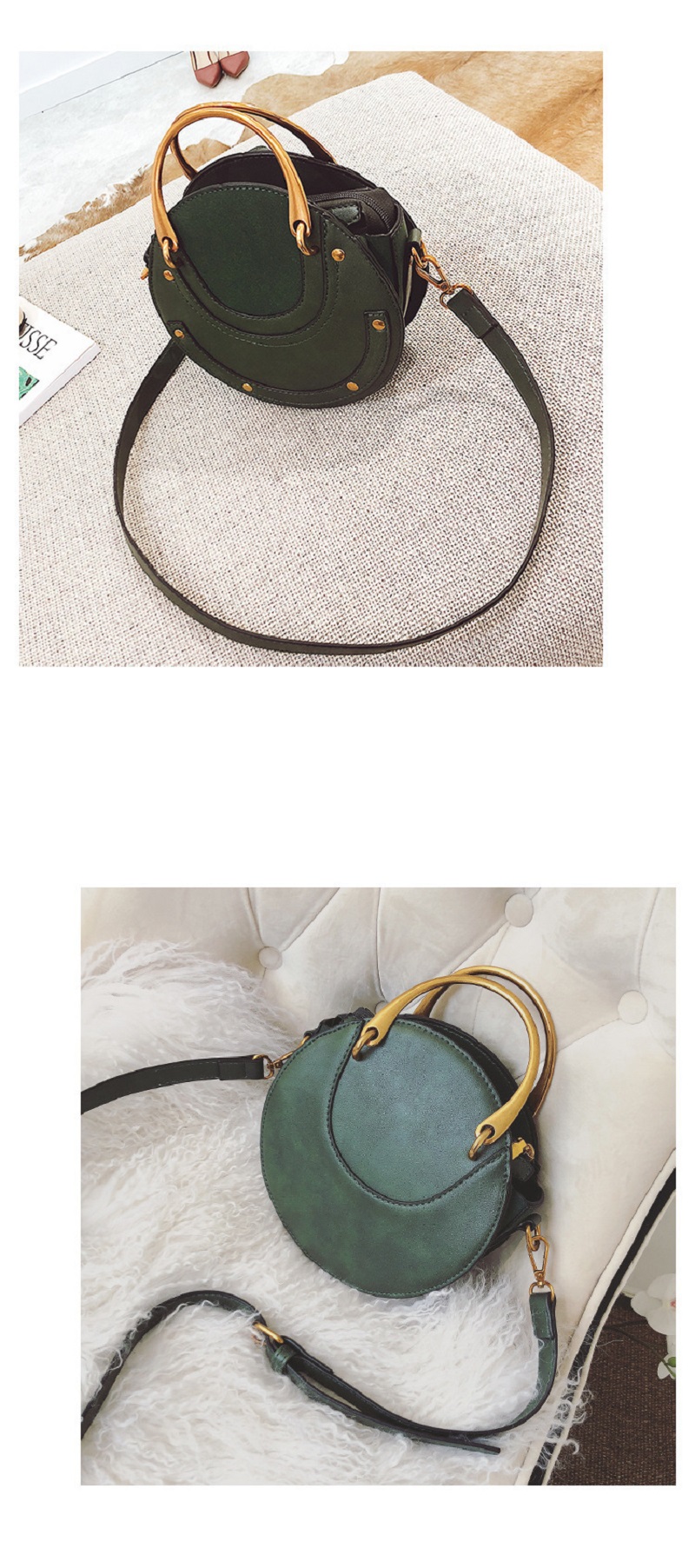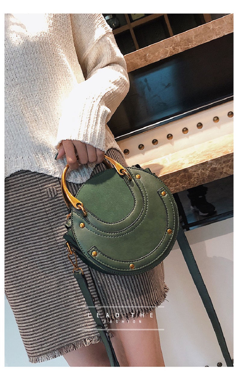Round Shoulder Bag Elegant, fashionable yet practical handbag Green - Leather - Golden Accents