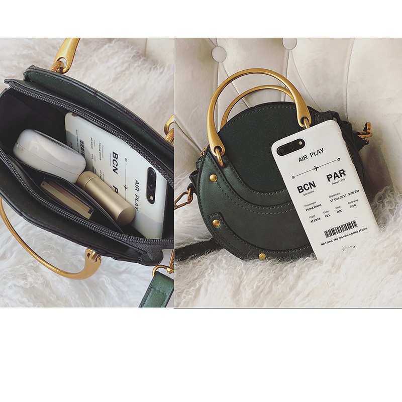 Crossbody Circle Bag - Round Shoulder Bag Elegant, fashionable yet practical handbag Green - Leather - Golden Accents