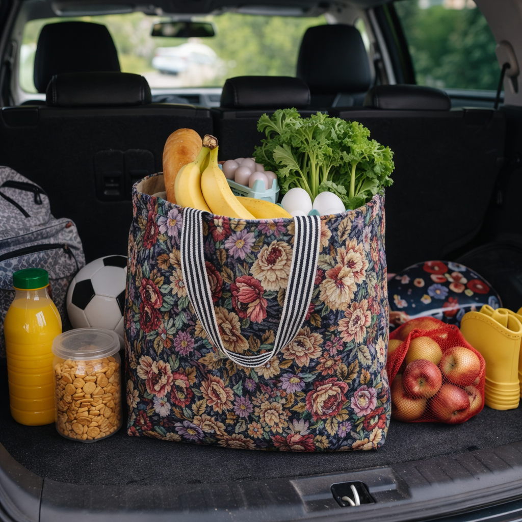 This versatile floral shopper tote is made to be used again and again — whether you’re running errands, heading to school activities, traveling, or organizing daily essentials.