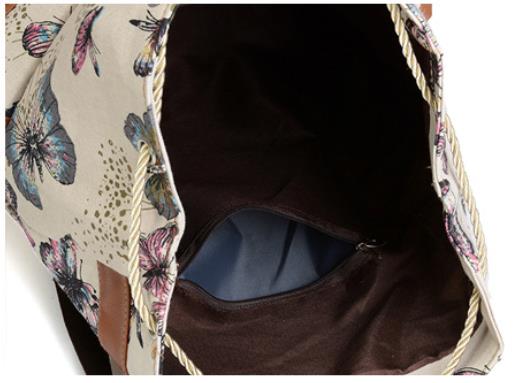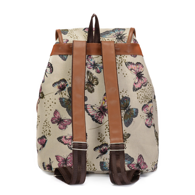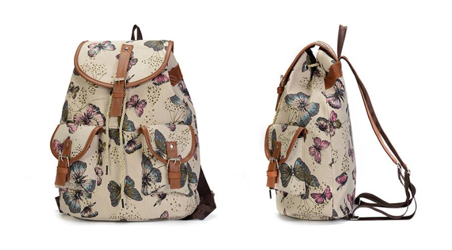 The ever practical backpack in a beautiful design. This backpack allows you to store your belongings and carry easily on public transportation, trains, or planes. MultiColor butterflies on a cream background. Plenty of storage. What's not to like.