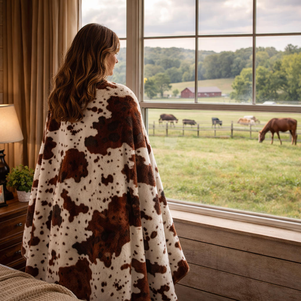 Animal Print Flannel BlanketSoft and Cozy. Sleep in it or wrap it around yourself. Either way you won't let go of the blanket. It will keep you warm but you'll fall in love with it's softness. 100% microfiber, soft, durable, fade-resistant, wrinkle-resistant, and machine washable. Light blanket Design: Cow Print Color: White base with brown spots Size: King size Dimensions: 92" Long x 85" Wide Weight: 4.25lbs