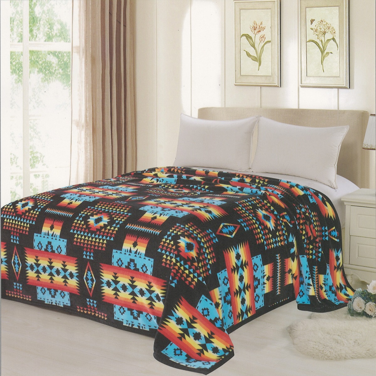 Serafina Geometic Print / Aztec Print BlanketUltra Soft and Cozy. Sleep in it or wrap it around yourself. Either way you won't let go of the blanket. It will keep you warm but you'll fall in love with it's softness. Bright & Colorful: The Geometric / Aztec print is colorful and it's a popular print. Adds color to your room. 100% microfiber, soft, durable, lightweight, fade-resistant, wrinkle-resistant, and machine washable. Design: Geometric Aztec print Color: Multicolor Size: King size Dimensions: 85" x 90" |