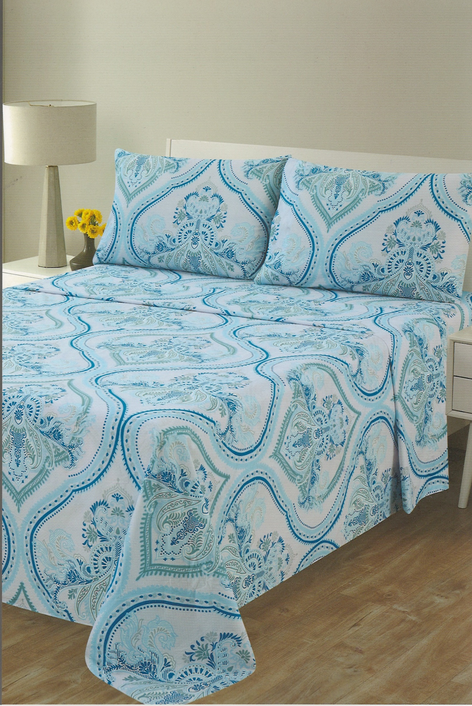 Soft Blue Geometric Pattern 4 Piece Printed Bed Sheets Set