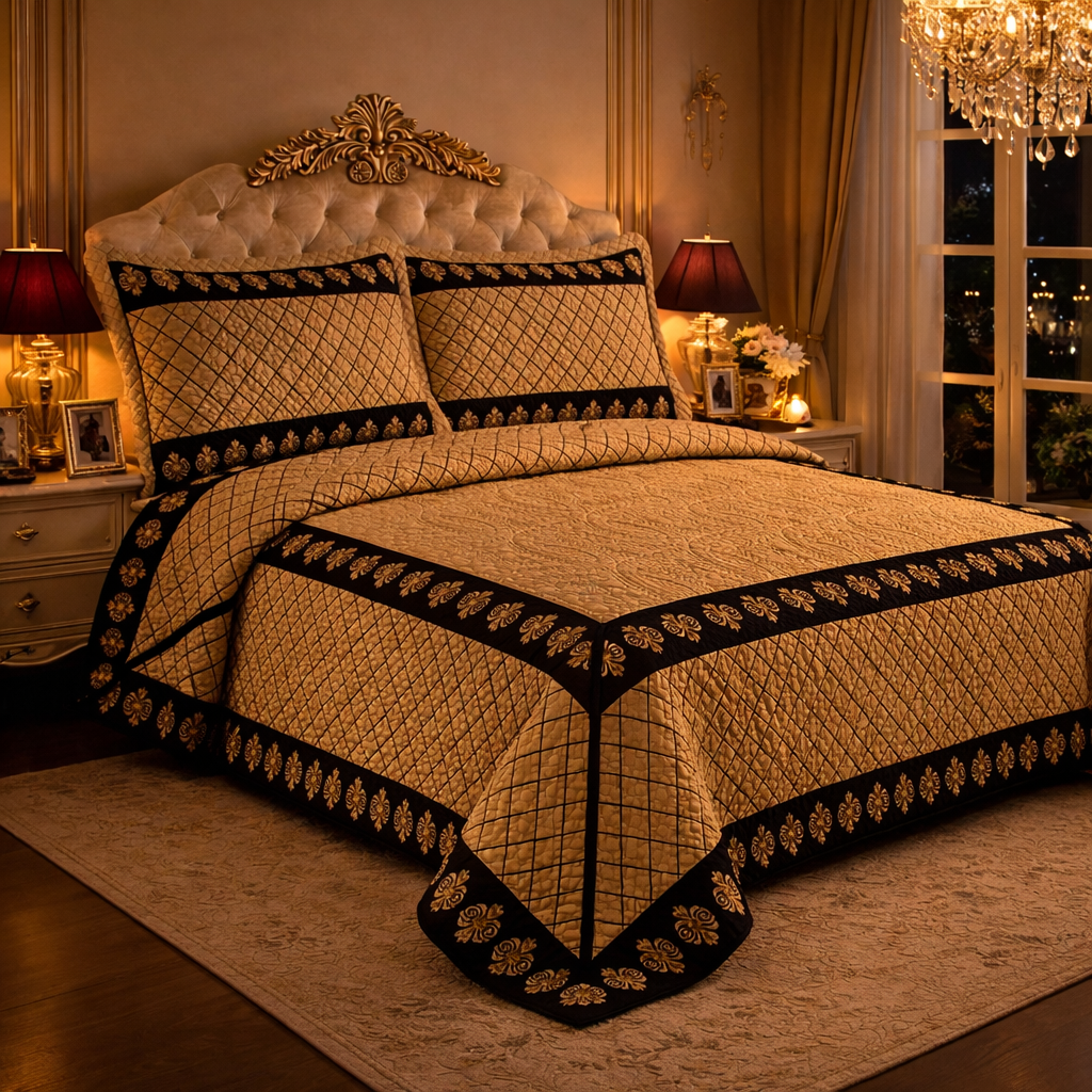 3 Piece Quilt Set - Vintage Royal Gold Design Bedspread