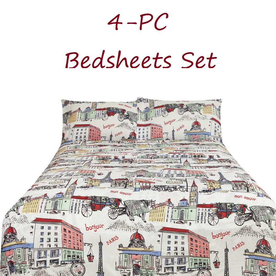Queen: 90" x 102" + 4" Flat Sheet, 60" x 80" + 10" Fitted Sheet and Two 20" x 30" + 4" Pillowcases.