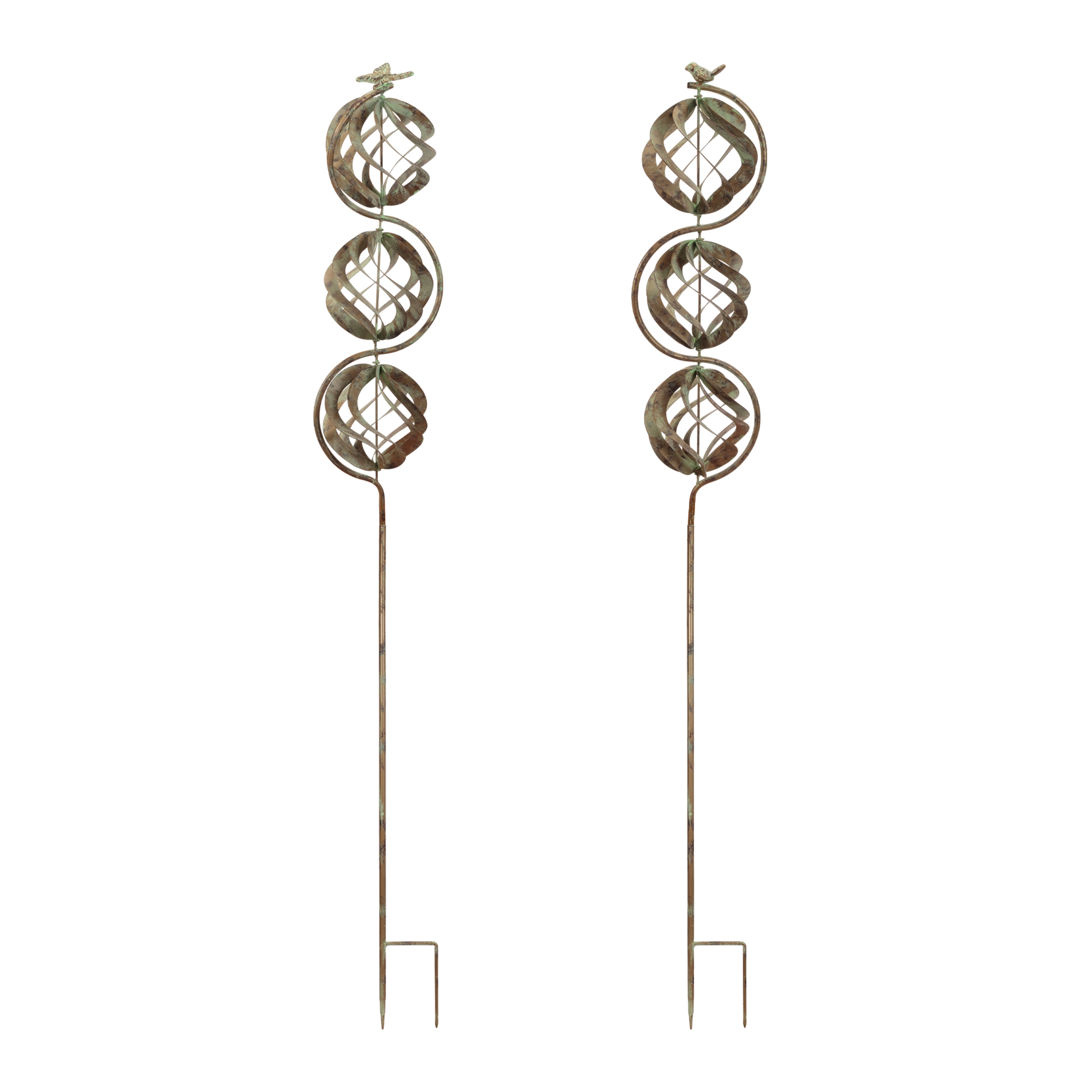 Add whimsical charm and vibrant color to your outdoor space with this Set of 4 Bird and Butterfly Garden Stakes featuring eye-catching triple orb accents. Standing an impressive 60 inches tall, each stake is crafted from durable iron and finished in a rustic copper and green palette that blends beautifully into garden beds, planters, or along walkways. With a mix of bird and butterfly motifs, these stakes bring movement, personality, and a touch of nature-inspired art to any yard or garden.