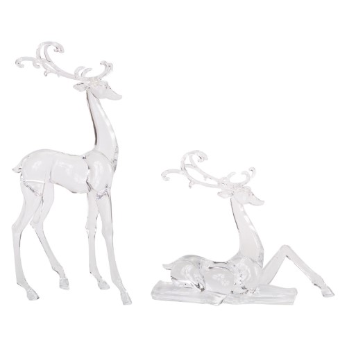 Elevate your holiday decor with this stunning set of Modern Clear Acrylic Deer Figurines. Designed to bring a touch of elegance and nature-inspired charm, these graceful deer feature a sleek transparent finish, making them a versatile addition to any festive display. Crafted from high-quality acrylic, they add a sophisticated wintery ambiance to mantels, shelves, or tabletops. Whether showcased together for a striking effect or placed individually, these deer figurines effortlessly enhance your seasonal decor. Sold in a set of two assorted designs to create a balanced display in your home.