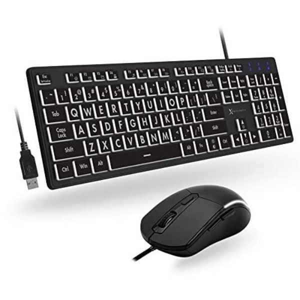 BACKLIT USB KEYBOARD MOUSE PC LARGE PRINT 7 COLOR BACKLIT