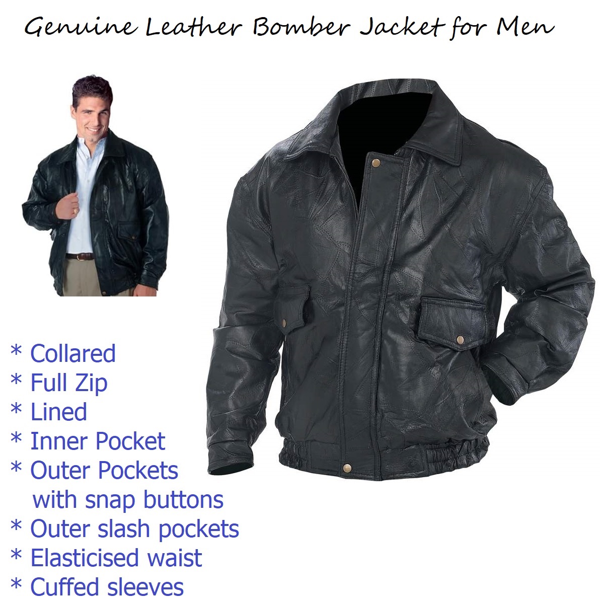 Genuine Leather Bomber Jacket highlights the popular aviator / bomber jacket style, combining character and function in an impressive coat.