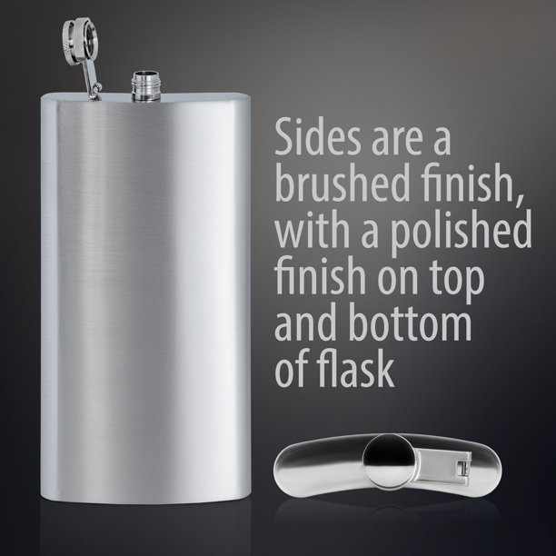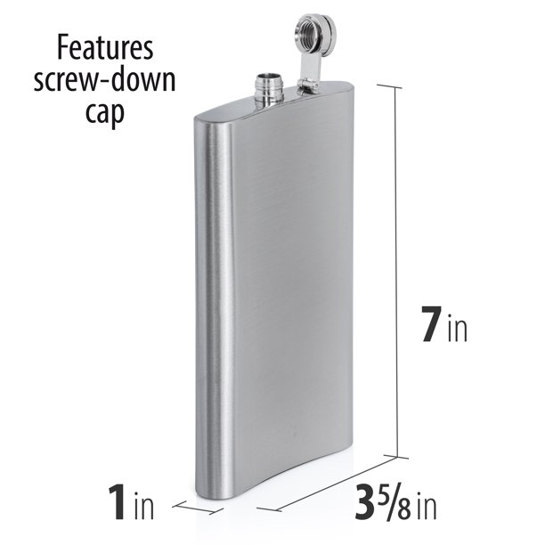 Sleek and contemporary, this hip flask will compliment any manner of dress, from tuxedo to blue jeans. Flask sides are a brushed finish, with a polished finish on top and bottom of flask. Stainless steel construction features screw-down cap. Carry your spirit of choice discreetly in a hip or interior pocket for a nip on the go.