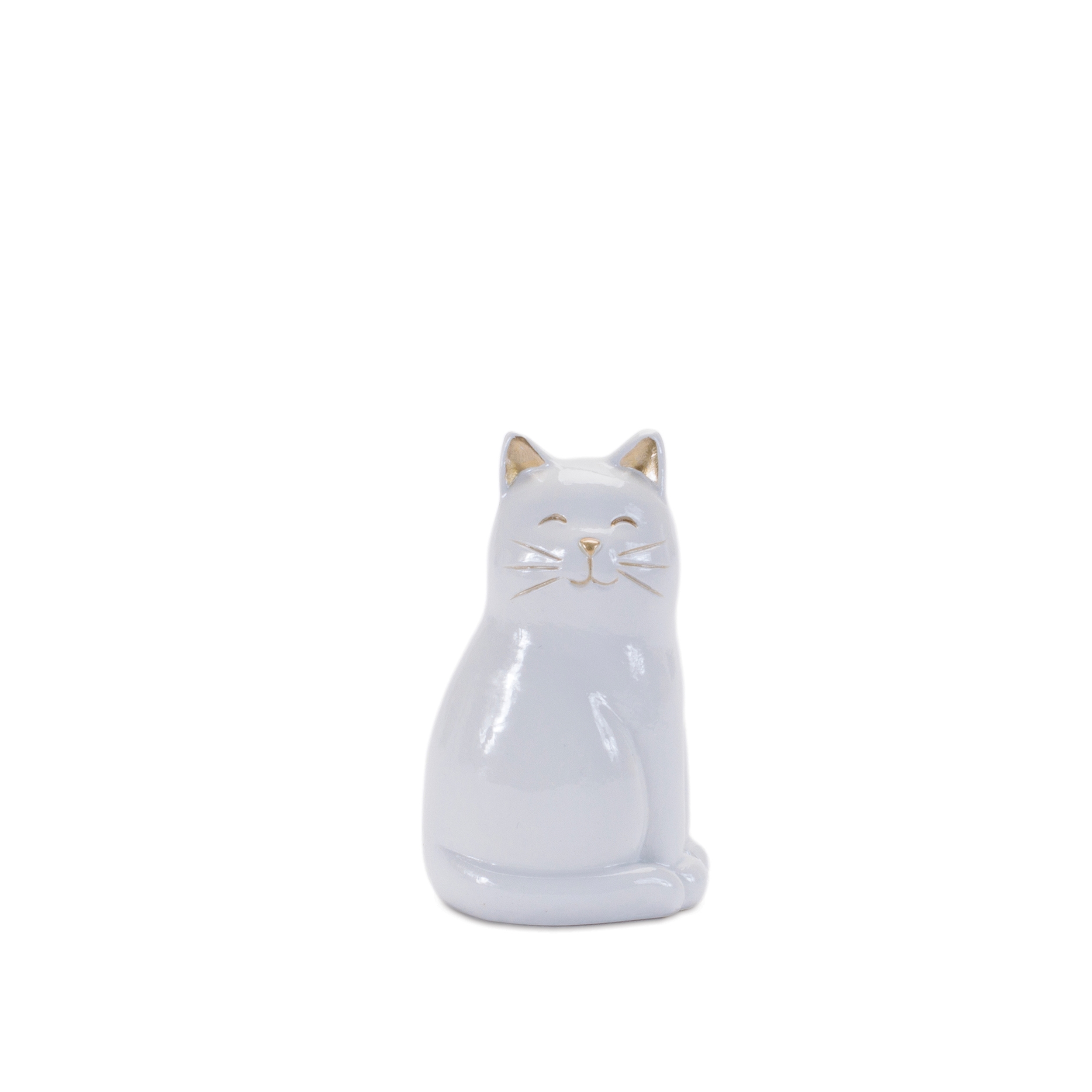 This adorable Sitting Cat Figurine set brings charm and elegance to any space. Featuring chic white and gold tones with a shiny glazed finish, these playful cats are designed with etched faces and delicate whisker accents. Sold in a set of six, including three assorted designs, they make the perfect gift for cat lovers. Display them on your bookshelf or tabletops for a friendly and sophisticated touch.