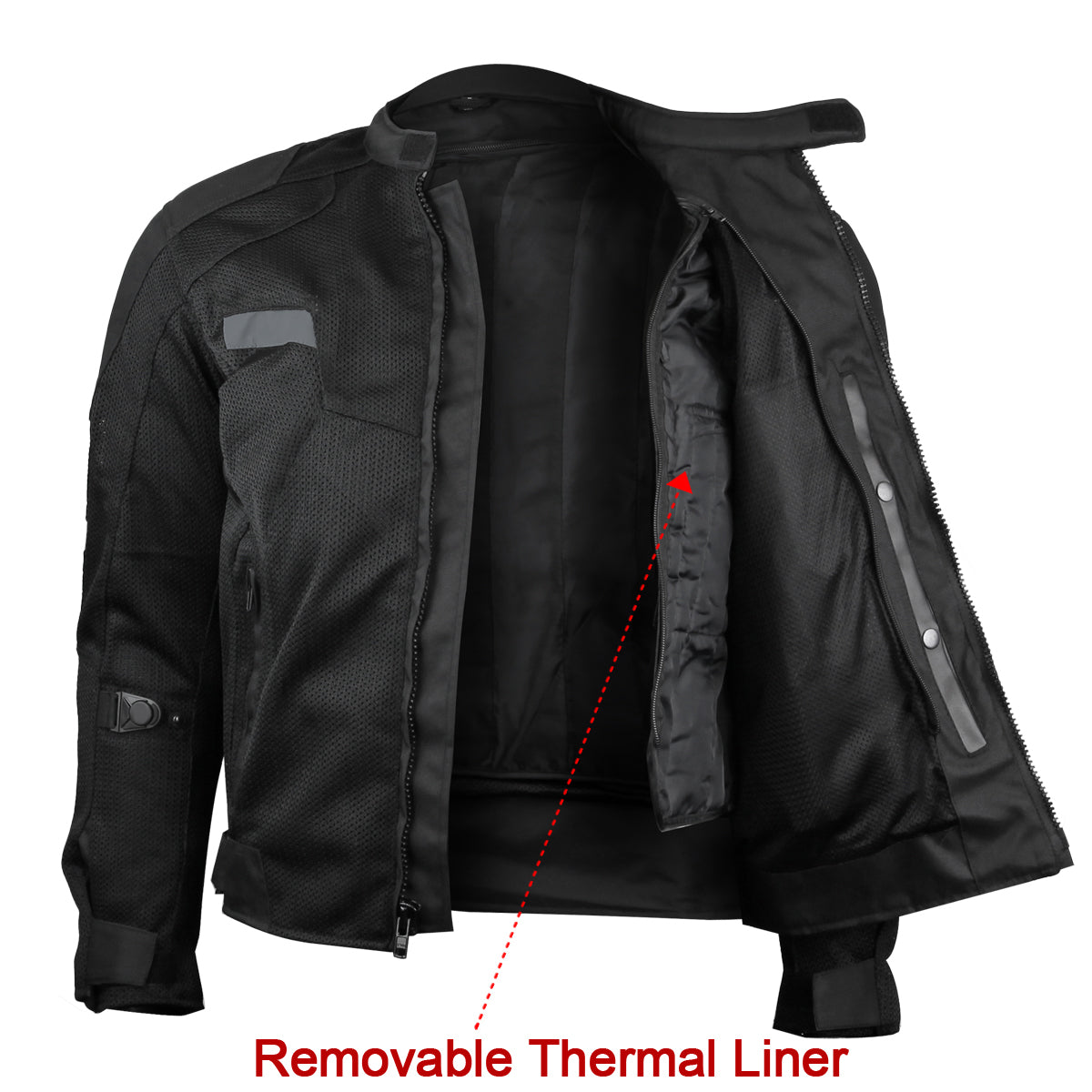 Black Mesh Motorcycle Jacket with Insulated Liner and CE Armor