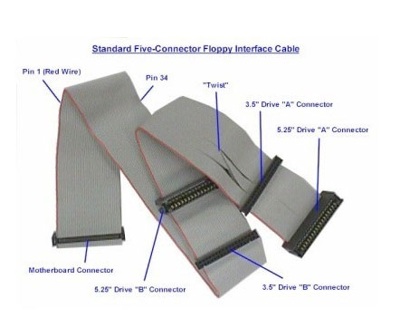 Five connector floppy cable