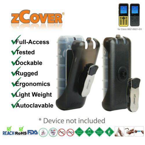 zCover Dock-in-Case Ruggedized Healthcare Grade Back Open Silicone Case With Universal Clip Holster Fits Cisco 8821/8821-EX Unified Wireless IP Phone CLEAR