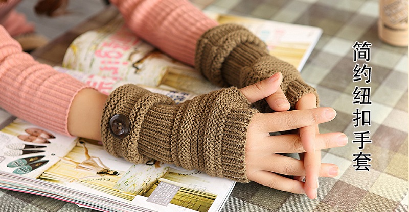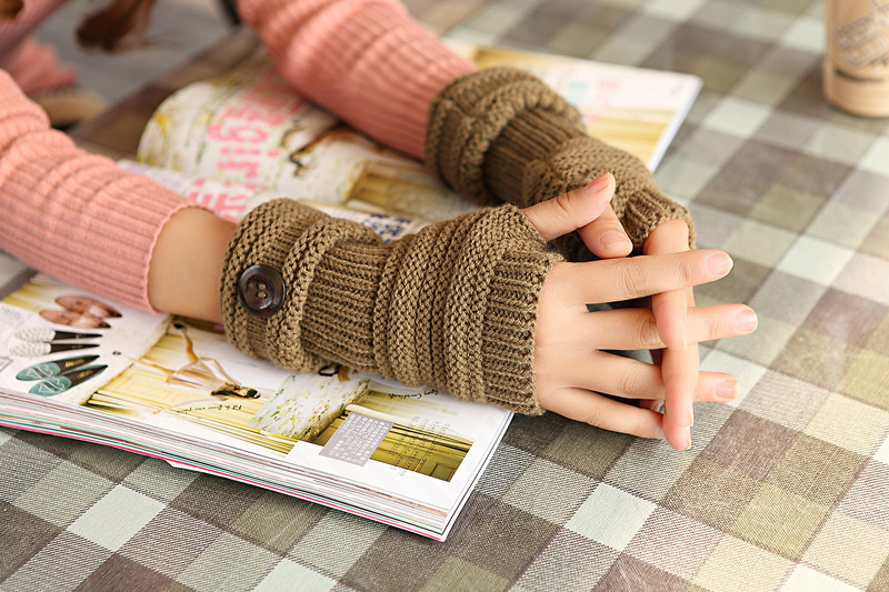 Ladies Fingerless Gloves / Open fingers Knitted Gloves Brown with decorative button Women's fashion accessory - Fashion gloves