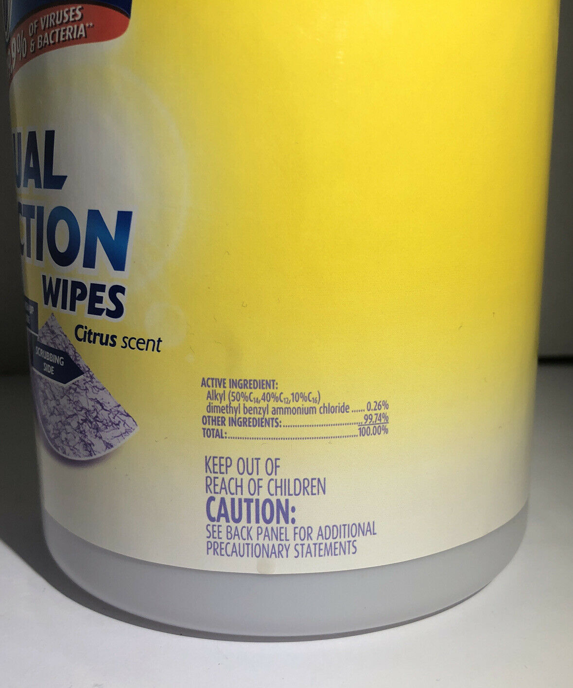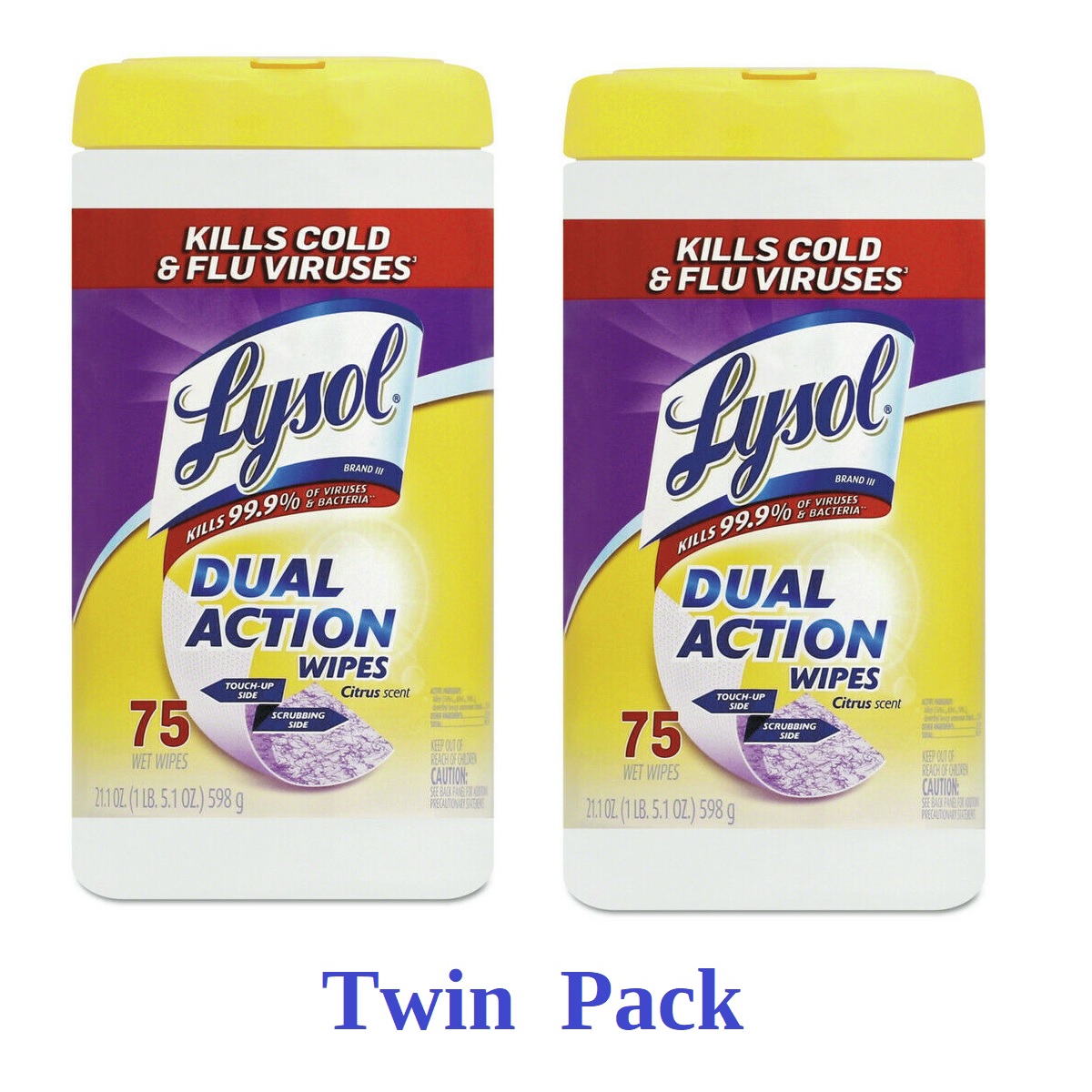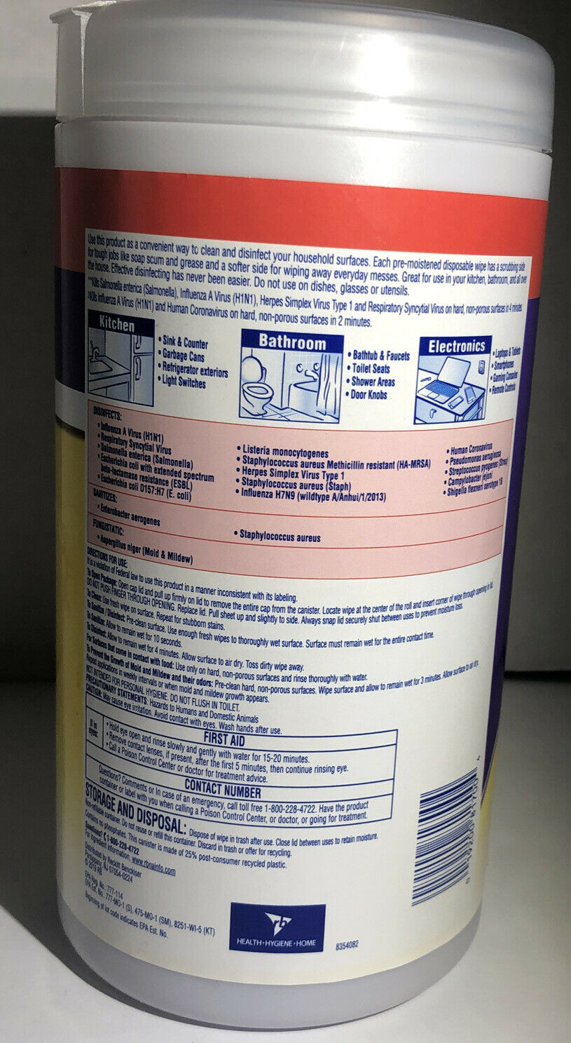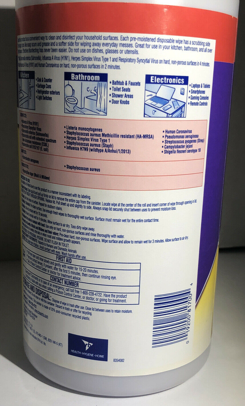 Each thick, pre-moistened wipe kills 99.9% of viruses and bacteria on hard nonporous surfaces when used as directed. The dual action design offers a scrubbing side of each wipe for tough messes and a non-abrasive side to clean the mess away. Ideal for cleaning, disinfecting and deodorizing. Use on kitchen counters, appliances, stove tops, cabinets, floors, garbage cans, toilet exteriors, bathtubs and sinks. Citrus scent. Includes one canister of 75 wipes.