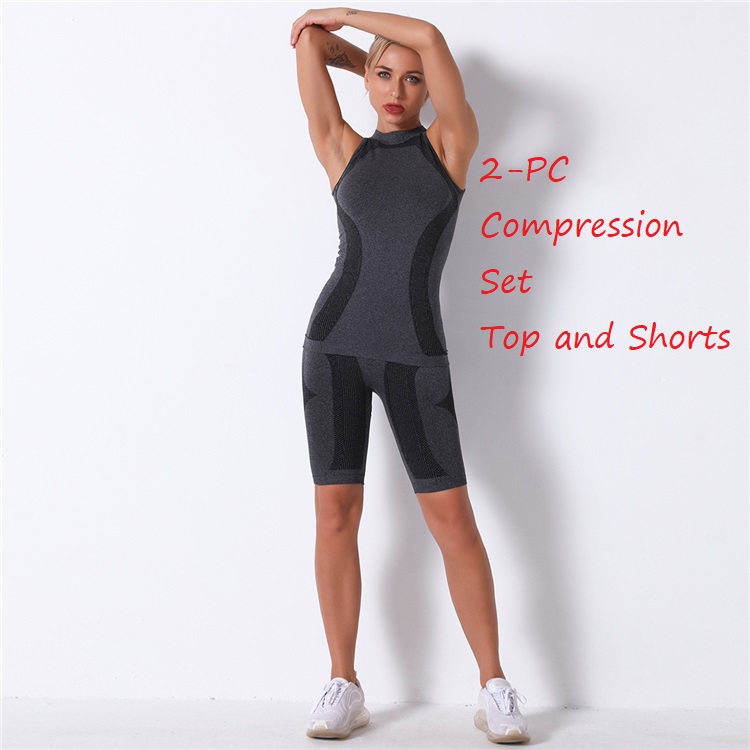 Women's Compression Suit Matching Top & Shorts Set High Waist Compression Shorts