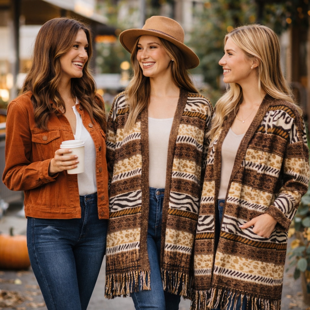 Leopard, Zebra and Aztec Print Duster / Kimono / Cardigan With Fringe Detail & Pockets
