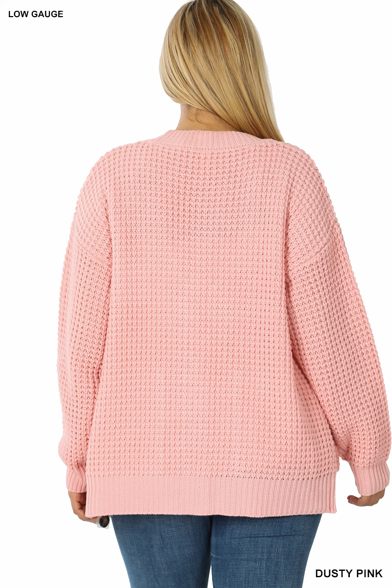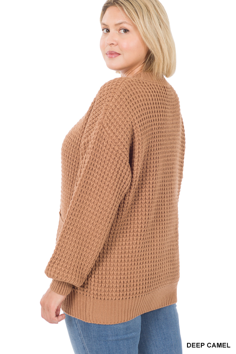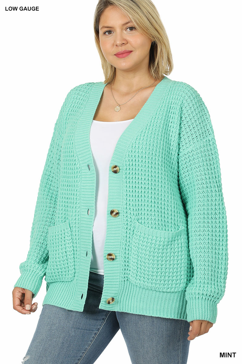 Side View - Plus Size Cardigan with Large Pockets and Buttons - Mint Color