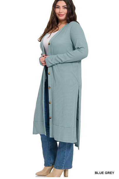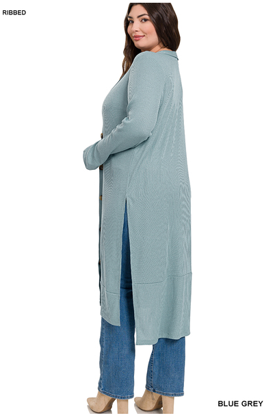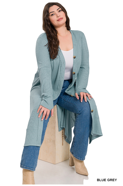 Plus Size Ribbed Long Cardigan / Duster