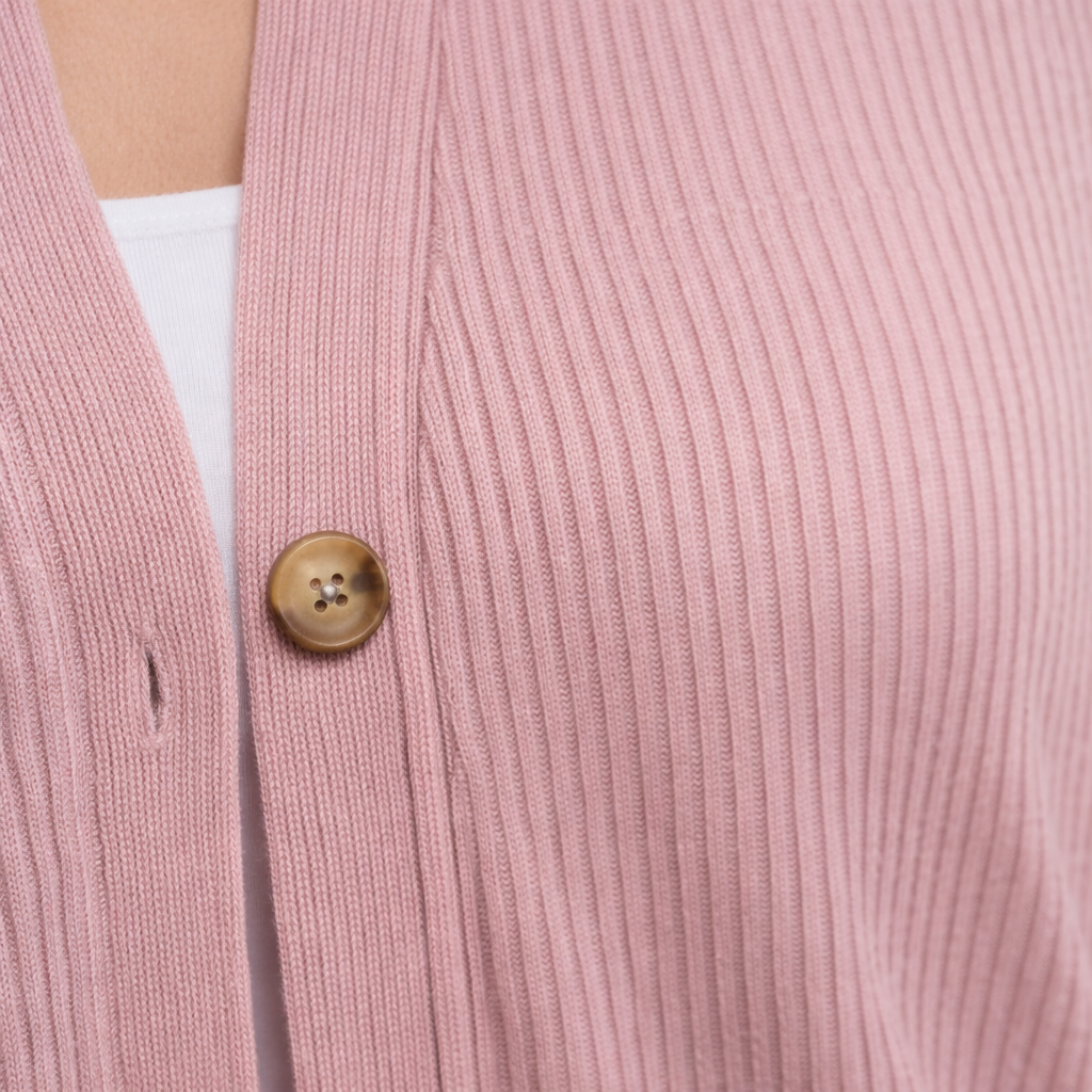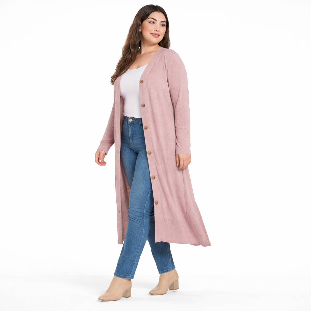 Women’s Plus Size Long Cardigan Duster Sweater Ribbed Button Light Rose XL-3XL