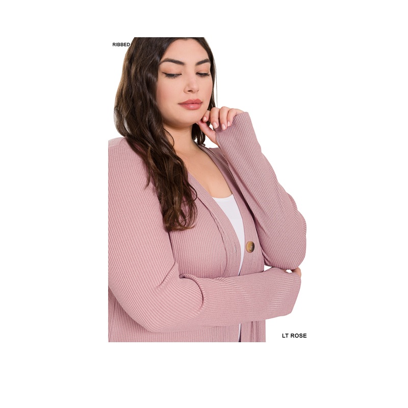 Plus Size Ribbed Long Cardigan / Duster - Light Rose