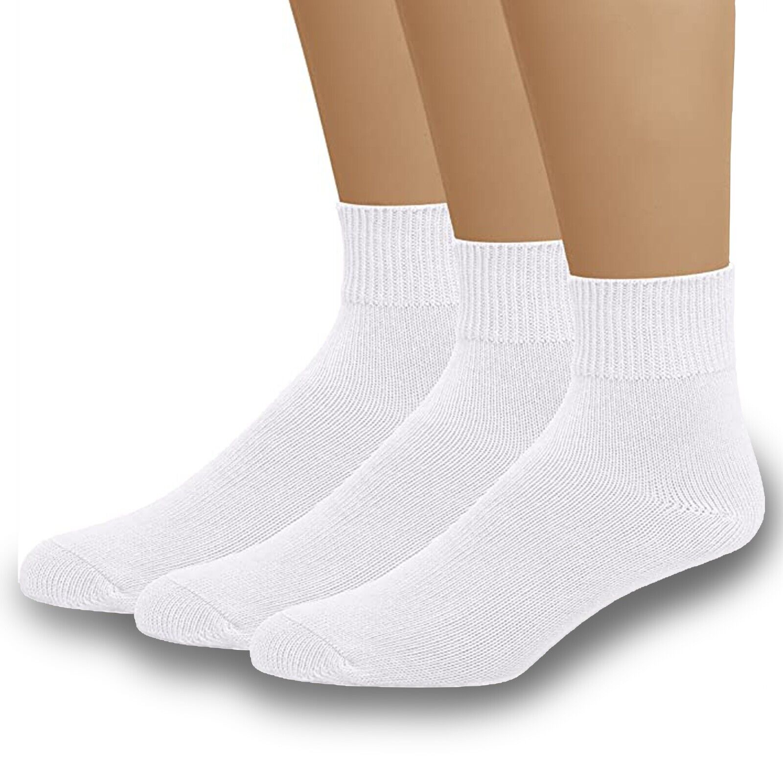 Women's White Diabetic Quarter Socks / Ankle Socks - set of 3 pairs
