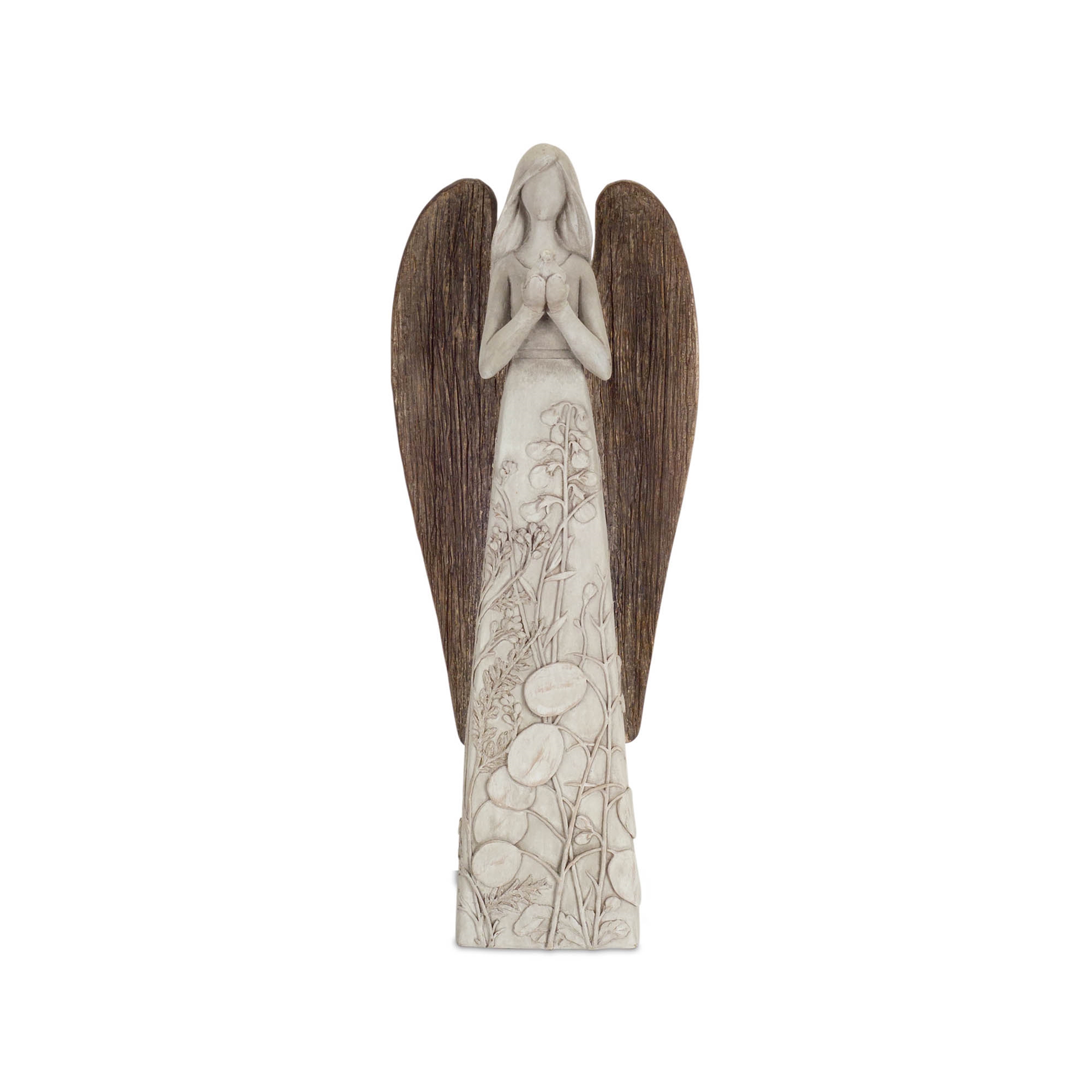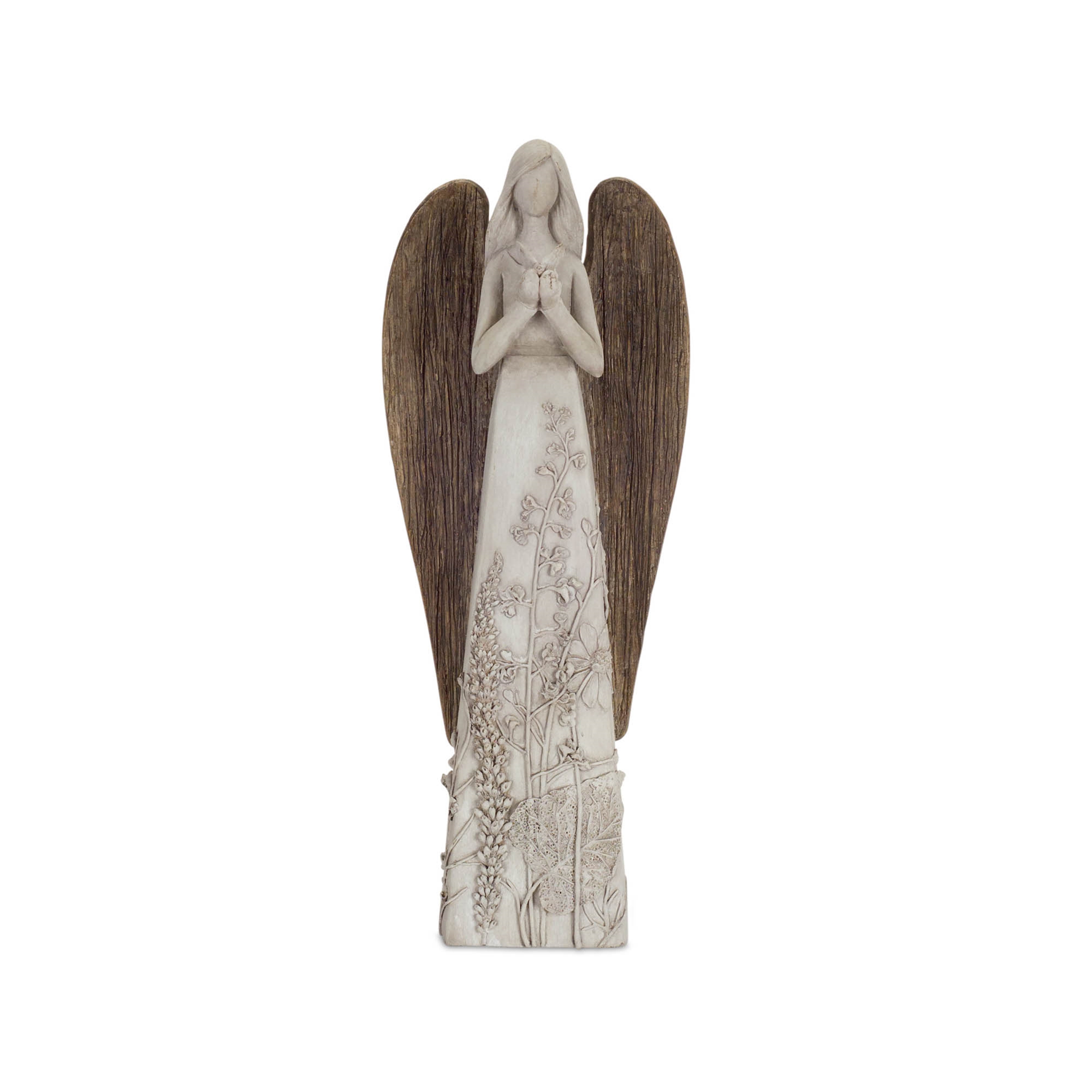 Elevate your home's ambiance with this stunning set of Angel Figurines. Crafted from durable polyresin and adorned with intricately carved floral details, each angel stands at 14 tall and features natural wood-style wings that bring a touch of warmth and elegance. Whether placed on a mantel, shelf, or tabletop, this set of two assorted angel designs adds a serene, heavenly touch to your decor. Perfect for any style, these figures are an ideal blend of beauty and craftsmanship, bringing both charm and spiritual grace to your indoor space. Sold in a set of two assorted designs to create a balanced display in your home.