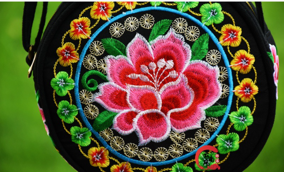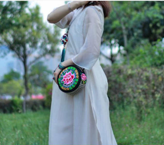 Embroidered Round Over the Shoulder Bag Bright Multi Color Floral bag adjustable strap