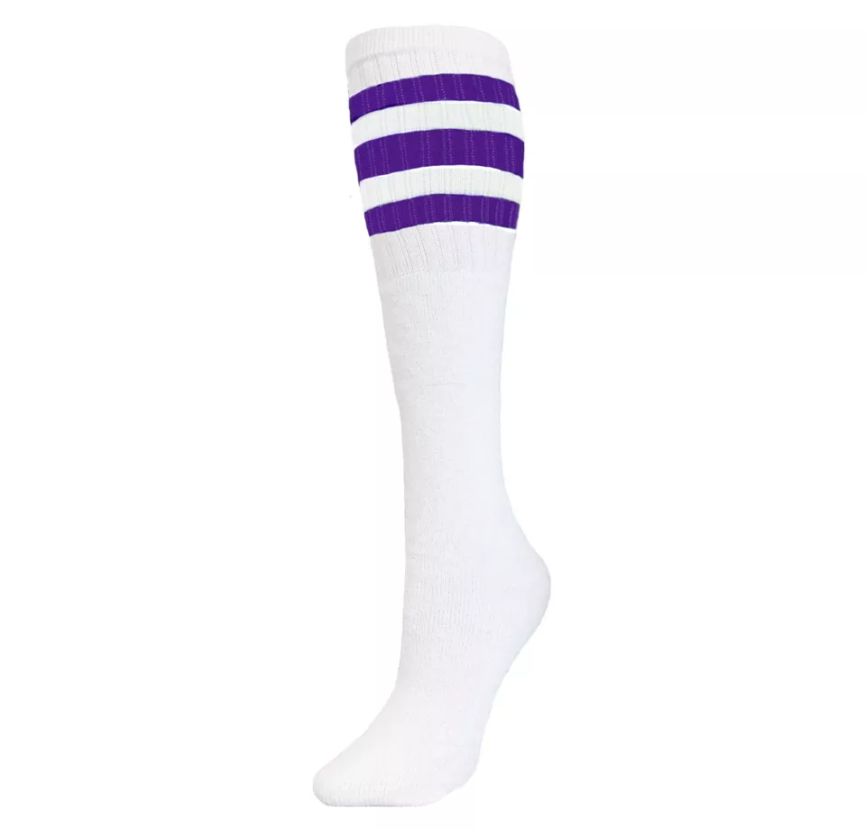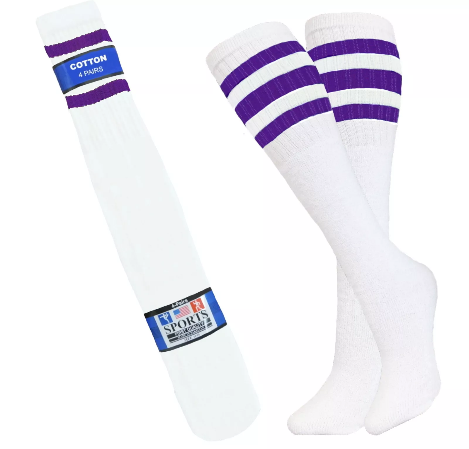 Baseball Socks Softball Striped Tube Socks Cotton Game Socks White & Purple 23" long