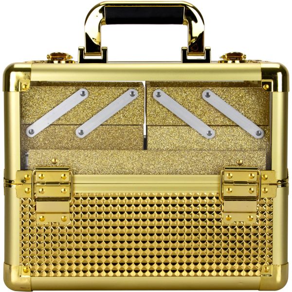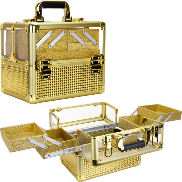 Gold Ice Cube Acrylic Makeup Train Case Professional Cosmetics Organizer 4-Tiers Armored