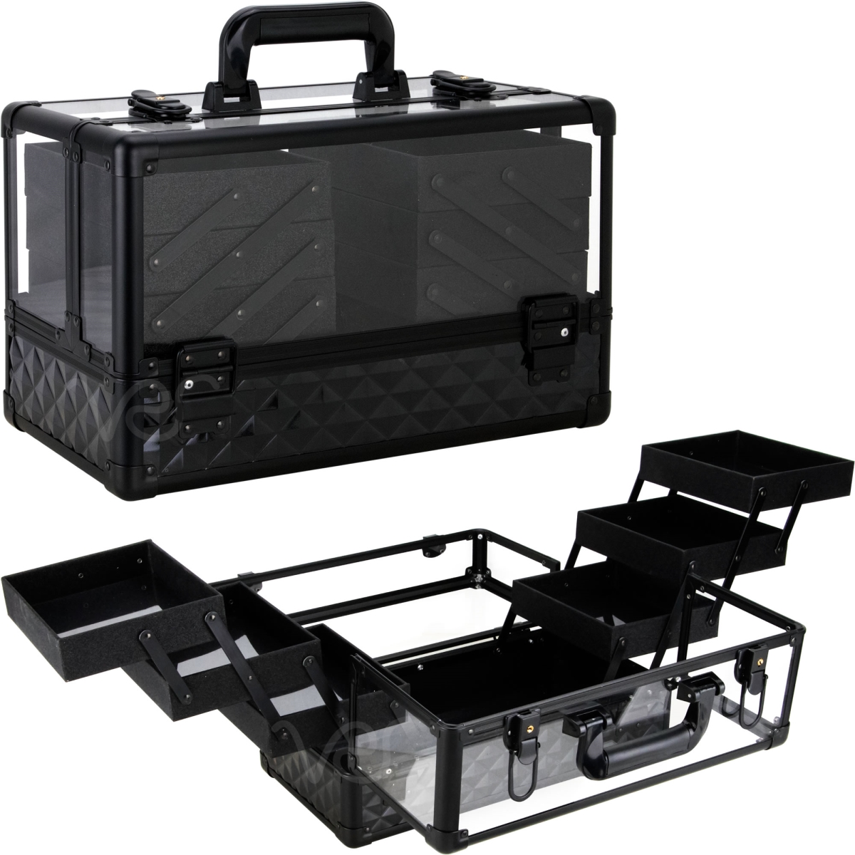 Cosmetics Makeup Case Accordion Trays Black Diamond Acrylic 6-Tier Professional Case