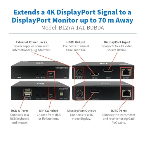 EATON TRIPP LITE SERIES CONNECTIVIT B127A-1A1-BDBDA DISPLAYPORT CAT6 EXTENDER KIT TRAN/REC 4K60HZ 4:4:4 POC 230FT TAA