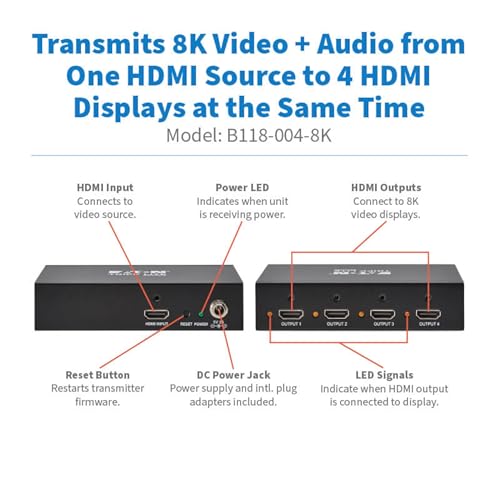 Eaton B118-004-8K 4-PORT HDMI SPLITTER 8K60HZ HDR10+ MULTI-RESOLUTION SUPPORT TAA