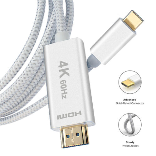 VegGieg 6.6FT/2M USB C to HDMI Cable 4K, Anti-Interference Gold-Plated Plugs, Aluminum Type-C to HDMI Cord - Thunderbolt 3 and 4 Compatible for iPhone 15 Series, MacBook, iMac, iPad Pro, Galaxy, Surface, Dell, HP