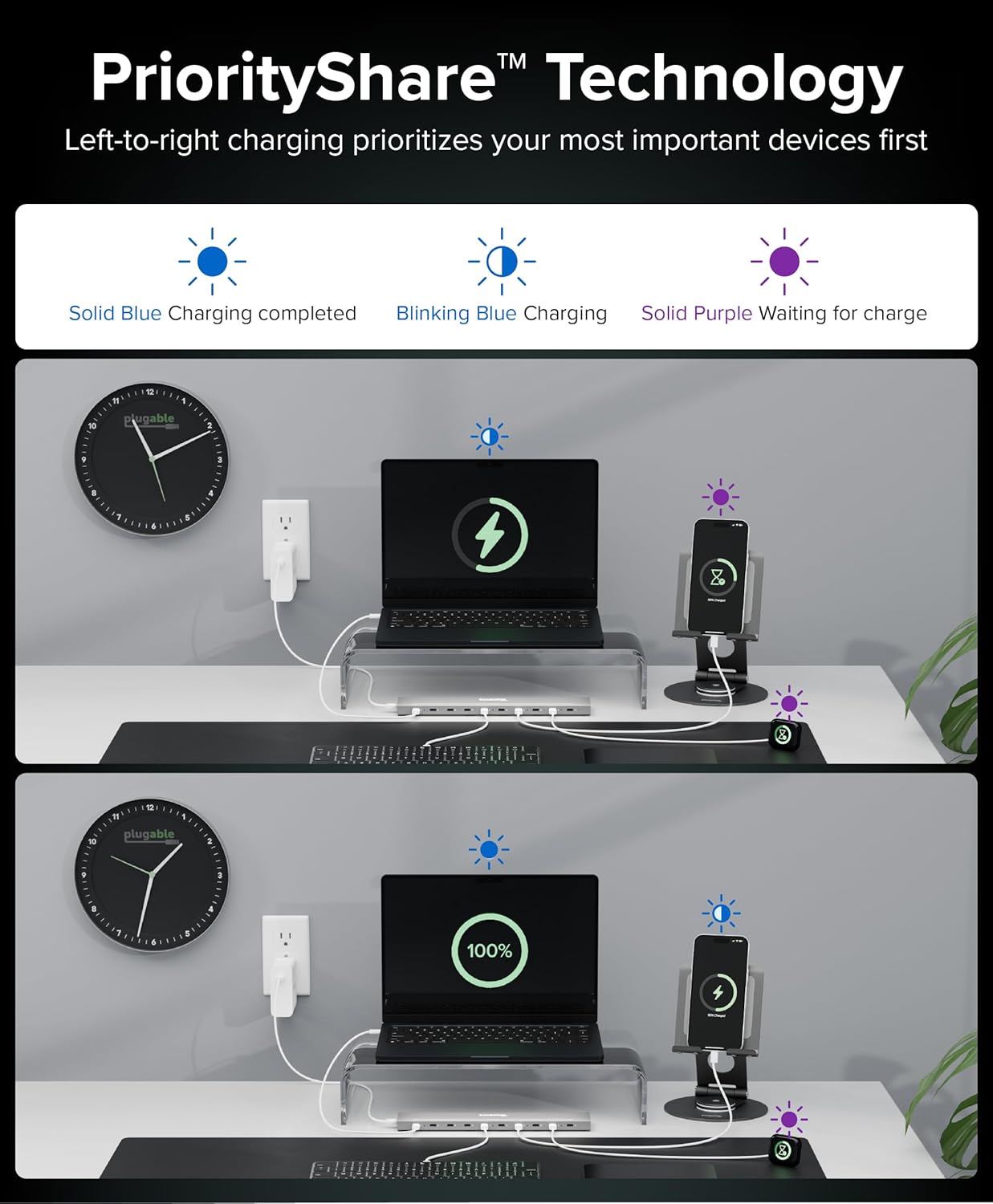 PLUGABLE USB TYPE-C CHARGER POWER DELIVERY 6-PORT PRIORITY