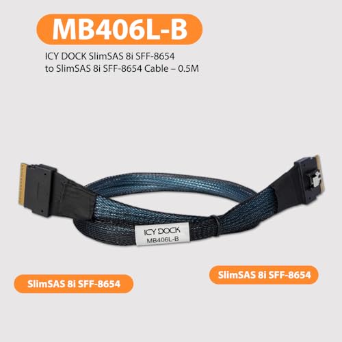 Icy Dock MB406L-B MB406L-B SLIMSAS 8I SFF-8654 TO SLIMSAS 8I SFF-8654 CABLE 0.5M