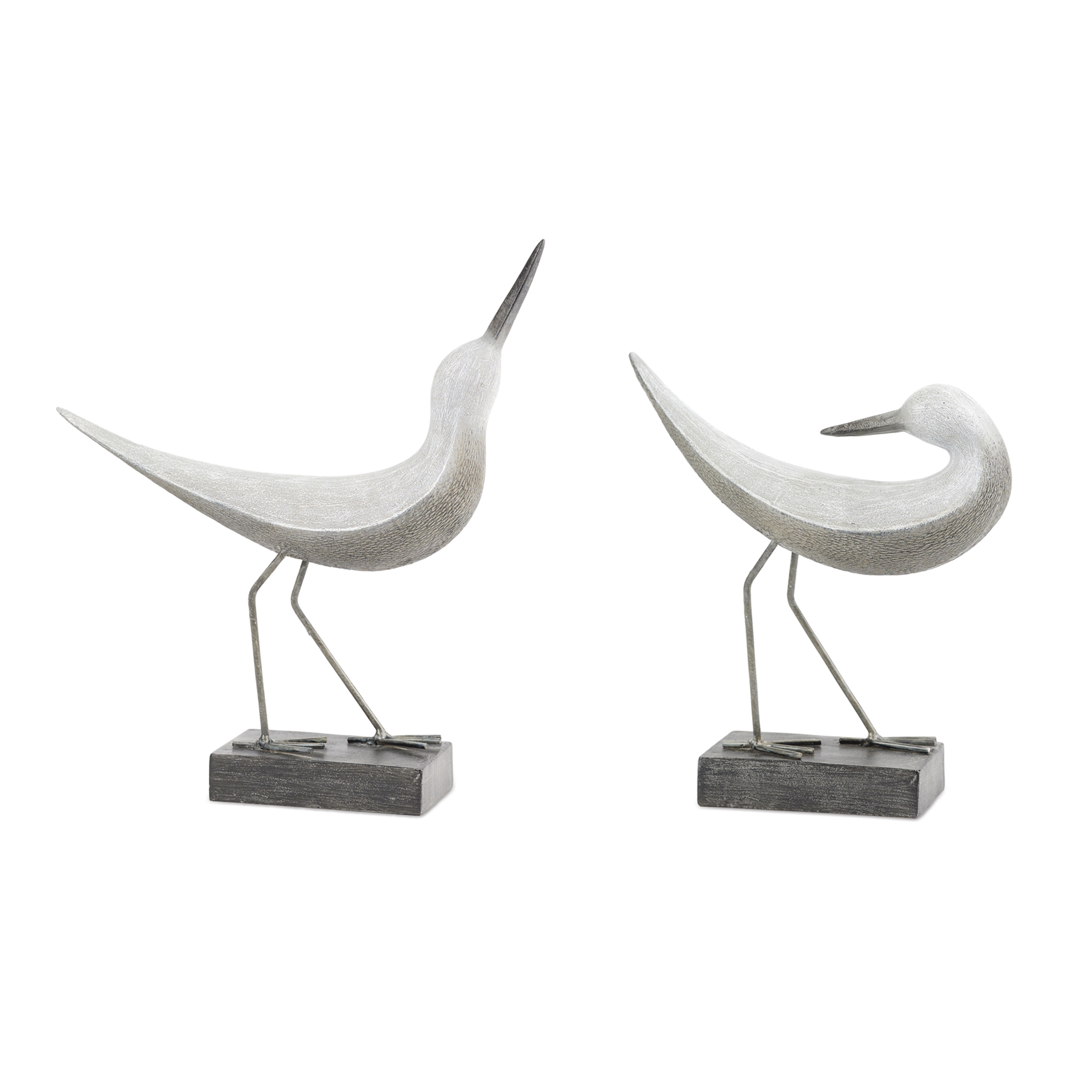 Bring coastal charm to your space with the Modern Sea Bird Figurine Set. Featuring sleek white and grey tones with a distressed finish, these figurines evoke a serene, seaside vibe. The modern sea bird design is complemented by metal leg accents and sturdy block bases, making them ideal for stylish display. Sold in a set of two assorted sizes, these figurines add a sophisticated, nature-inspired touch to your bookshelf or tabletops.