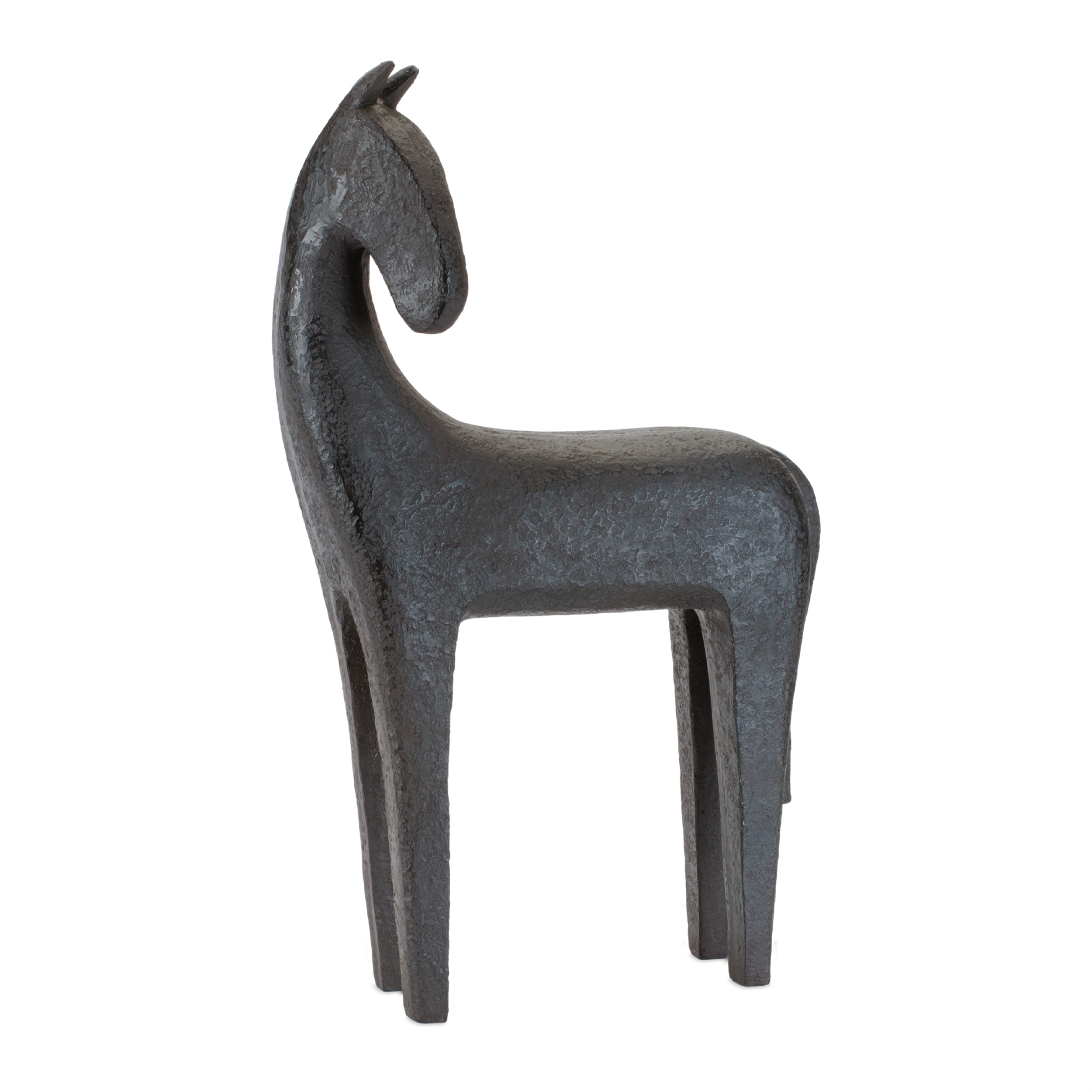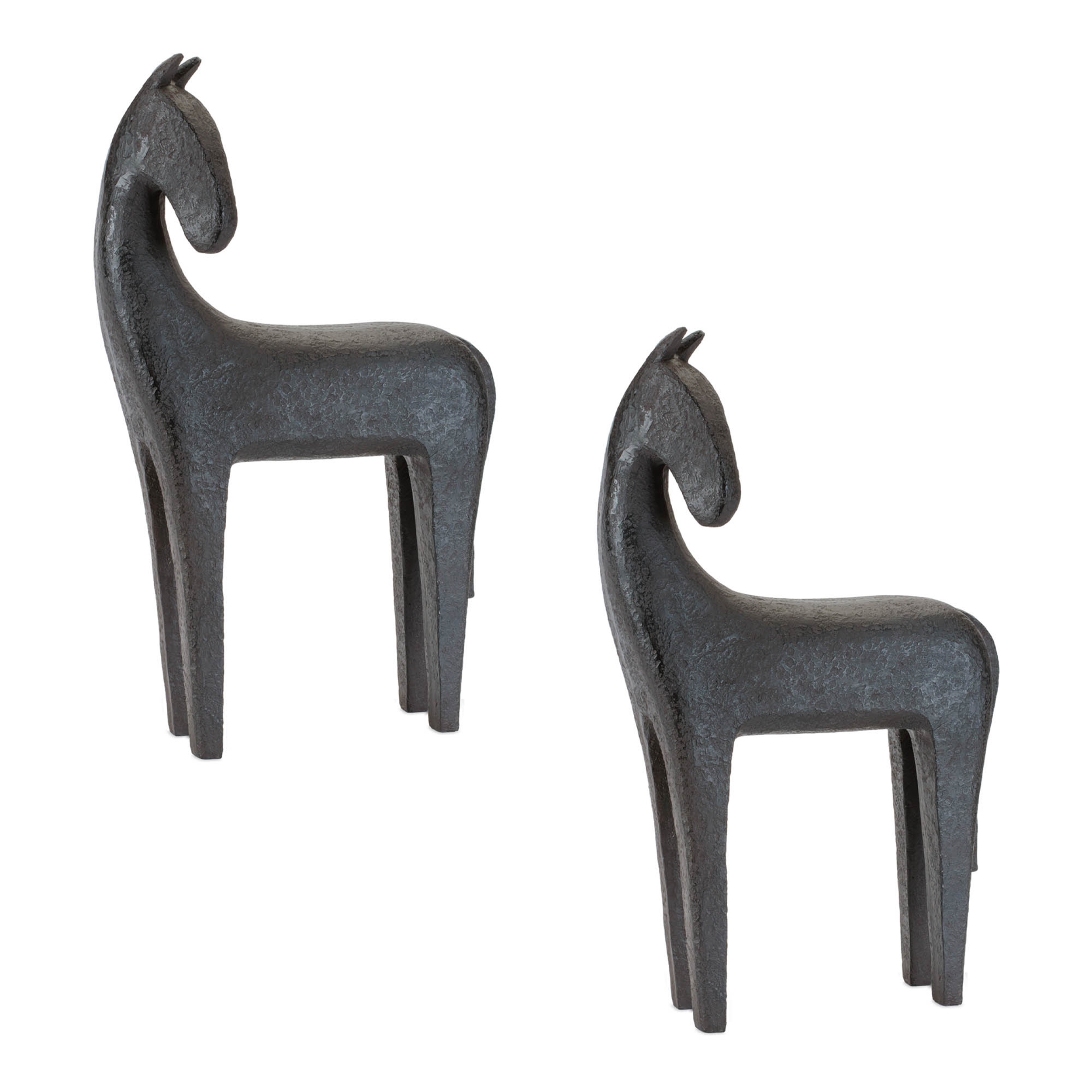 Add an elegant and rustic flair to your home with the Modern Horse Statue Set. Crafted from durable polyresin, these statues feature a striking black tone with distressed accents for a timeless, modern look. The sleek horse shape with a standing design makes it an ideal statement piece for bookshelves, tabletops, or mantels. Sold as a set of two matching pieces, they enhance both modern farmhouse and rustic country decor.