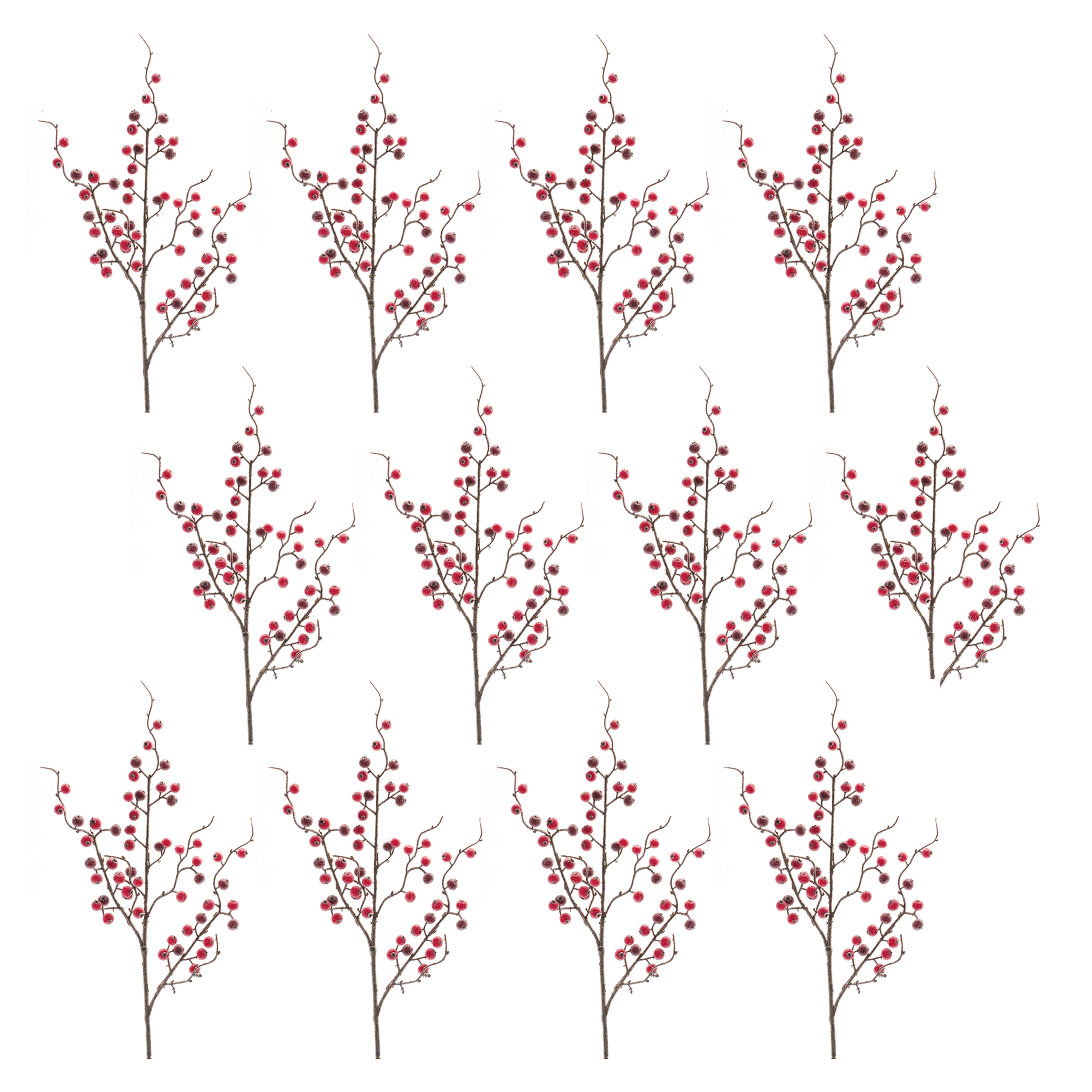 Enhance your holiday decor with this elegant set of Iced Berry Twig Sprays. Featuring natural red and brown tones with a frosted finish, these sprays bring a festive touch to any space. Whether displayed in a tabletop vase for added height or incorporated into a porch pot arrangement, these versatile pieces create a warm and inviting atmosphere. Perfect for seasonal decorating or gifting, these sprays will brighten any home with their winter charm. Sold in a set of twelve pieces to make a statement in any holiday seasonal display.